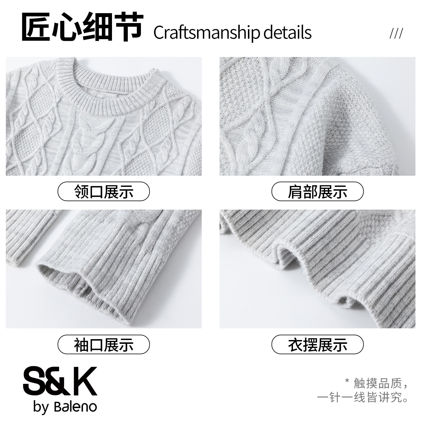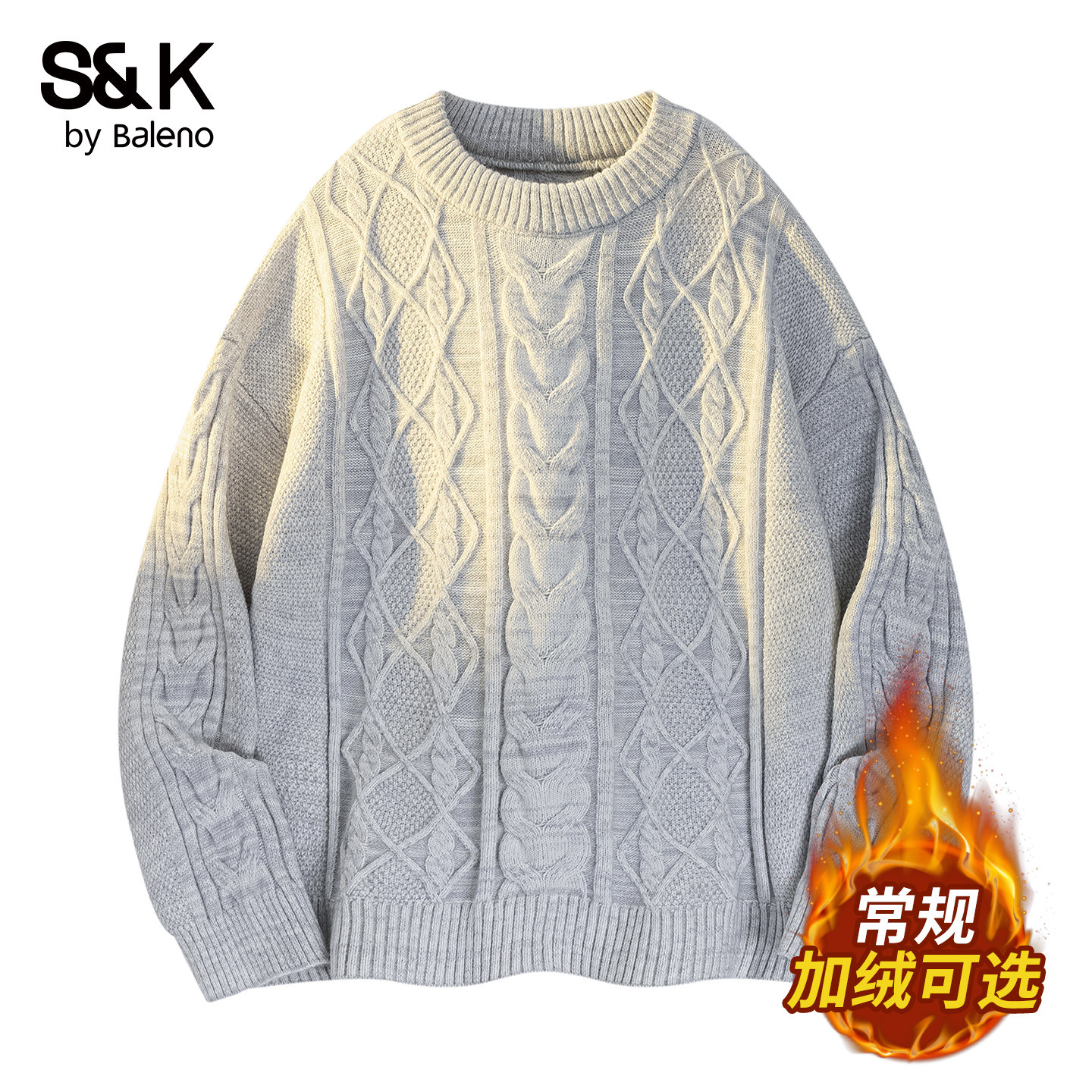 📚 班尼路SK纯色宽松针织衫男秋冬加绒加厚圆领绞花扭花百搭毛衣男YS