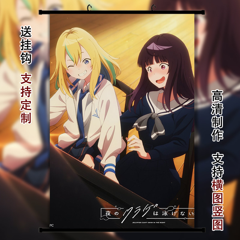 📚 夜晚的水母不会游泳周边挂画二次元海报宿舍壁纸动漫定制墙装饰画