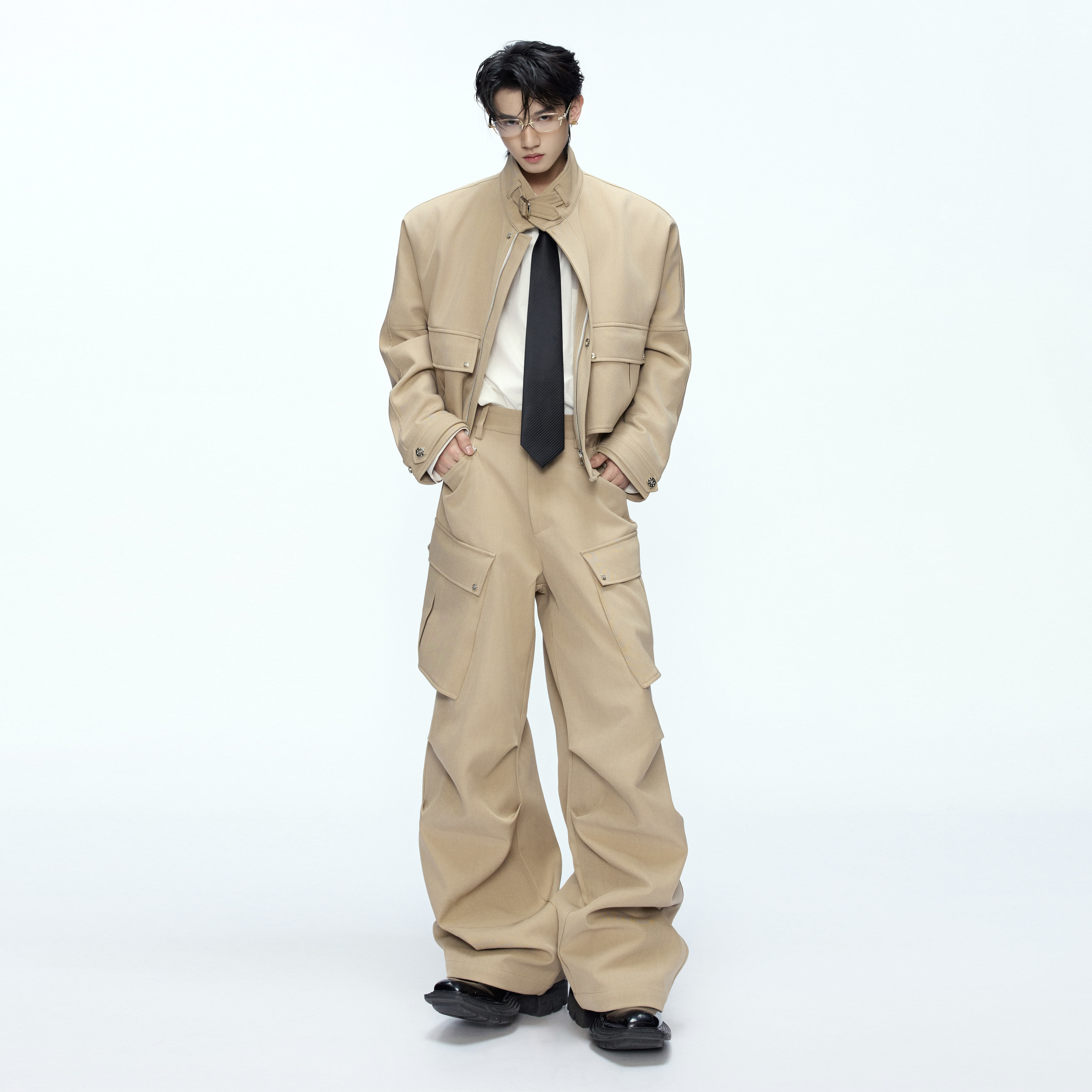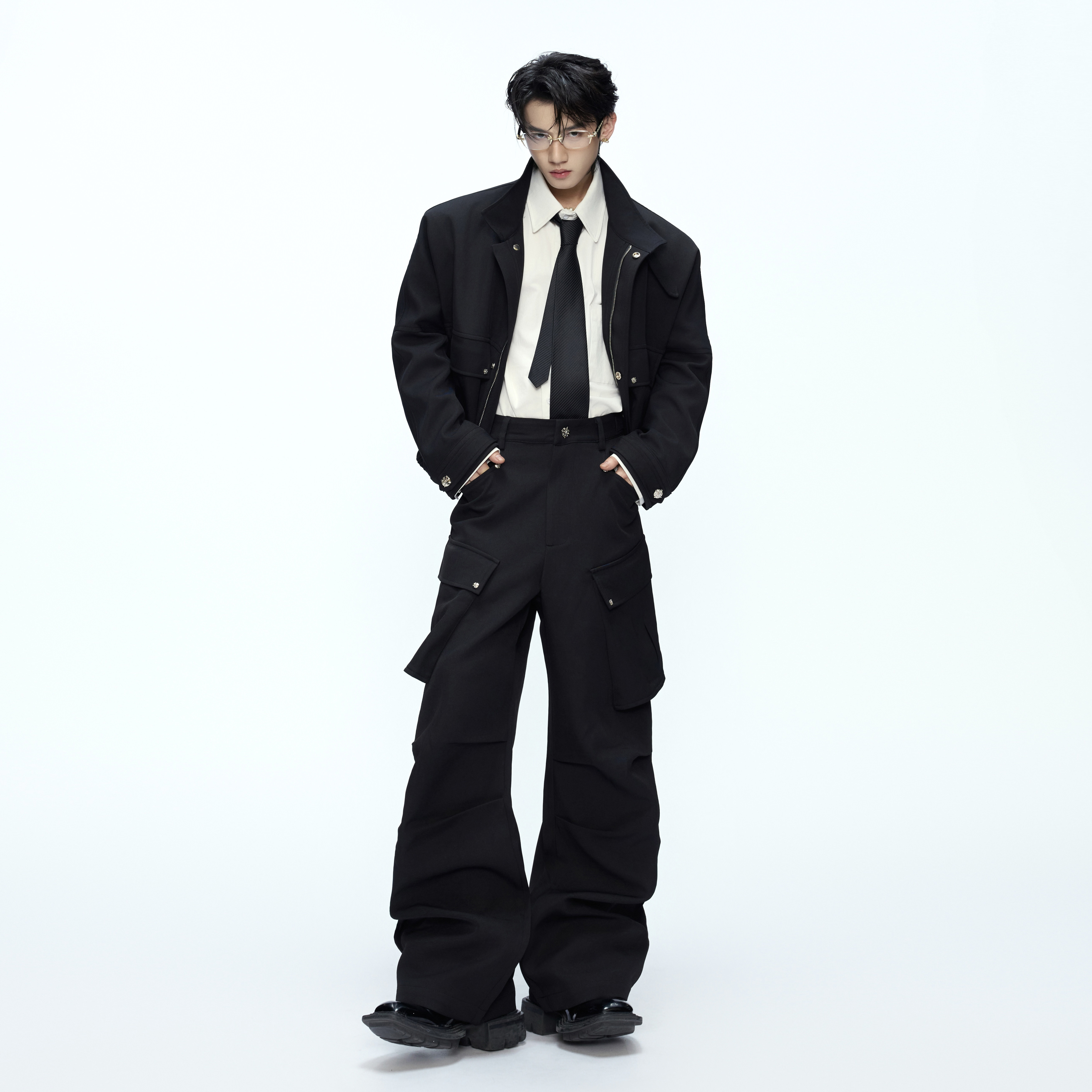 📚 ArguECulturE重工解构工装廓形短款夹克外套多口袋小众工装裤套装