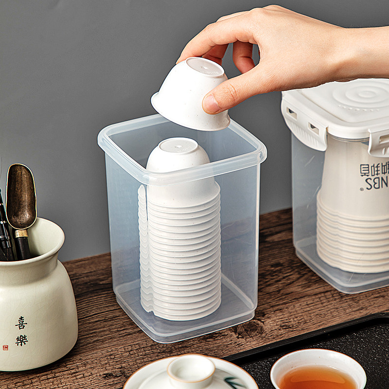 📚 一次性功夫茶杯架子桌面稻壳茶杯收纳盒家用防尘取杯器茶道用品