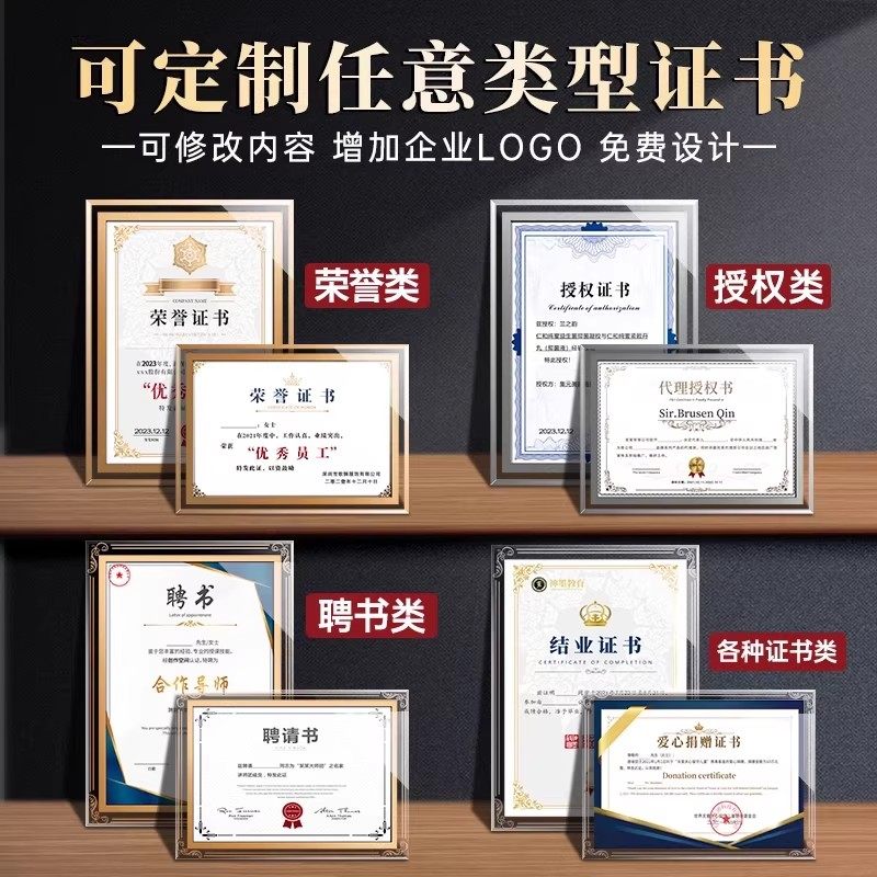 📚 水晶荣誉证书定制a4奖状结业毕业获奖授权书聘书证件书外壳任命企业优秀员工颁奖裱相框收藏捐赠奖牌奖杯打印
