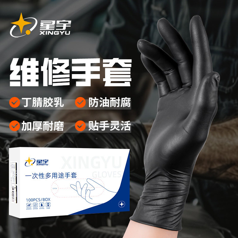 📚 星宇一次性丁腈手套汽修工作耐油防水食品级耐磨厨房修车美发专用