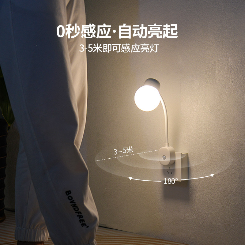 📚 人体感应小夜灯插电式走廊过道人来即亮夜间自动光控老年人起夜灯