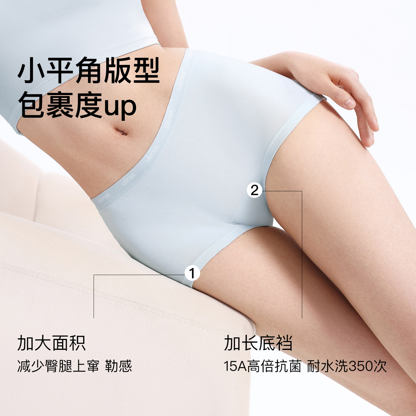 📚 ubras平角纯棉内裤女15A抗菌加长裆字母织带包臀四角女士大码短裤