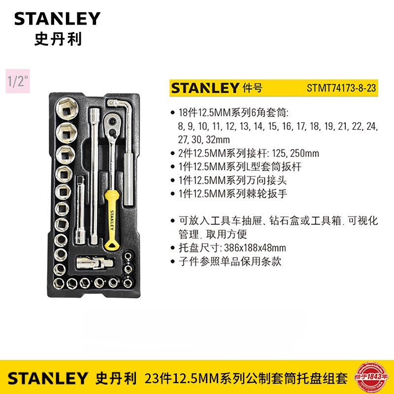 📚 。23件套12.5mm机修汽修套筒扳手工具钻石盒组套STMT74173-8-23 8