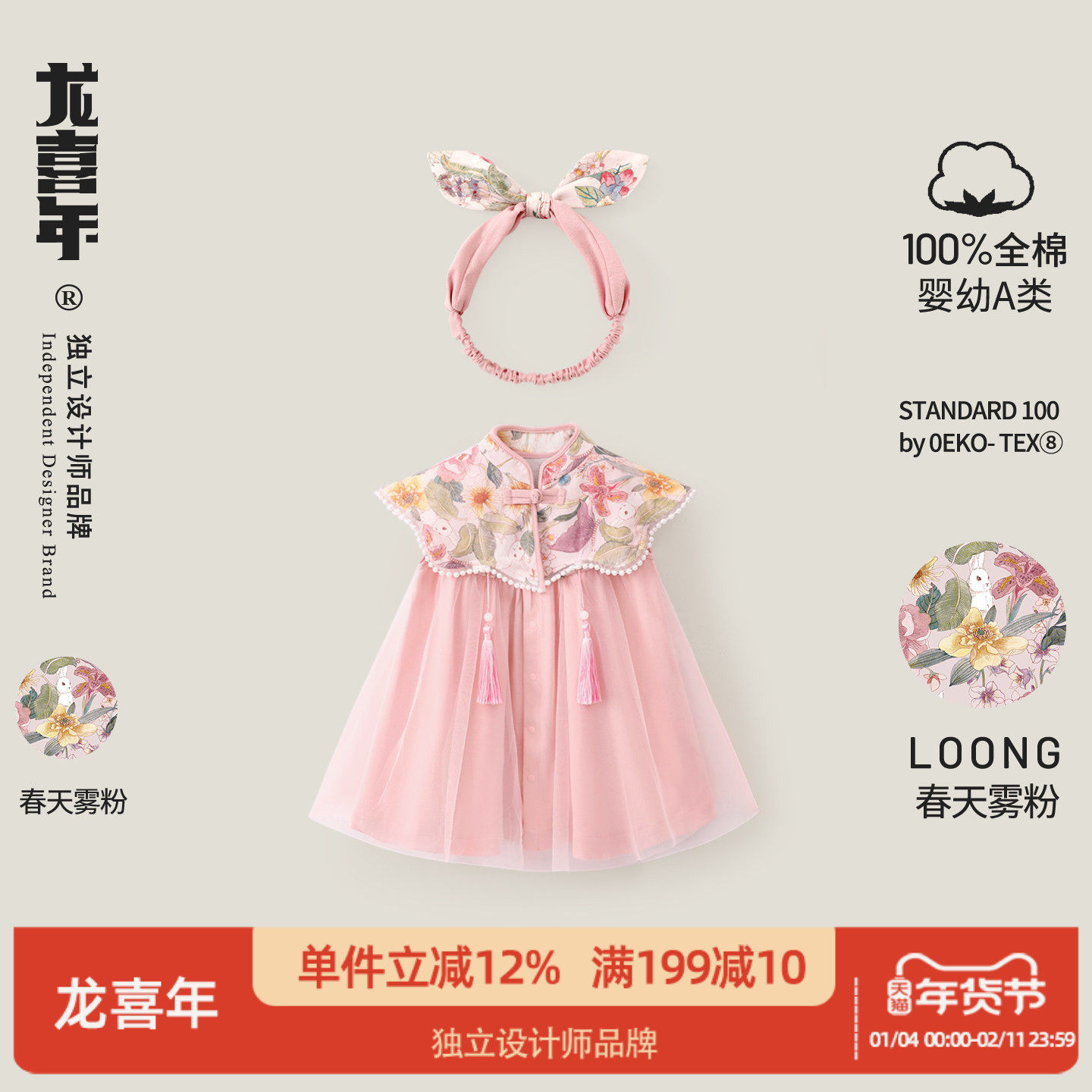 📚 龙喜年一周岁女宝礼服粉色连衣裙中式汉服古风公主百天宴衣服夏装