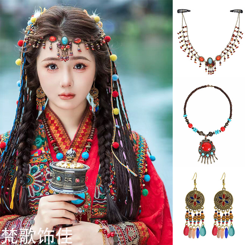 📚 古风异域风汉服流苏眉心坠额饰发饰藏族古装耳环旅游项链配饰女
