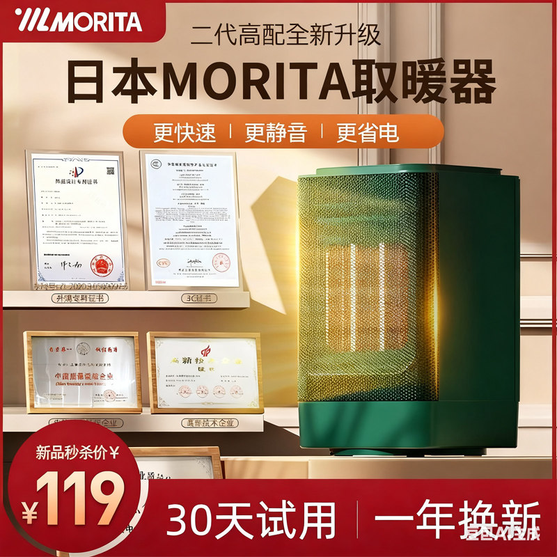 📚 日本morita森田暖风机小型桌面办公室家用轻音节能取暖器小太阳