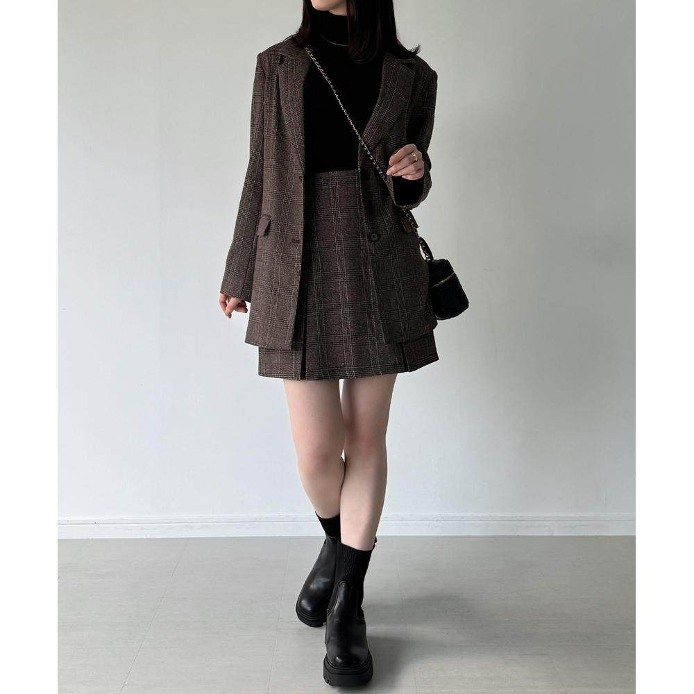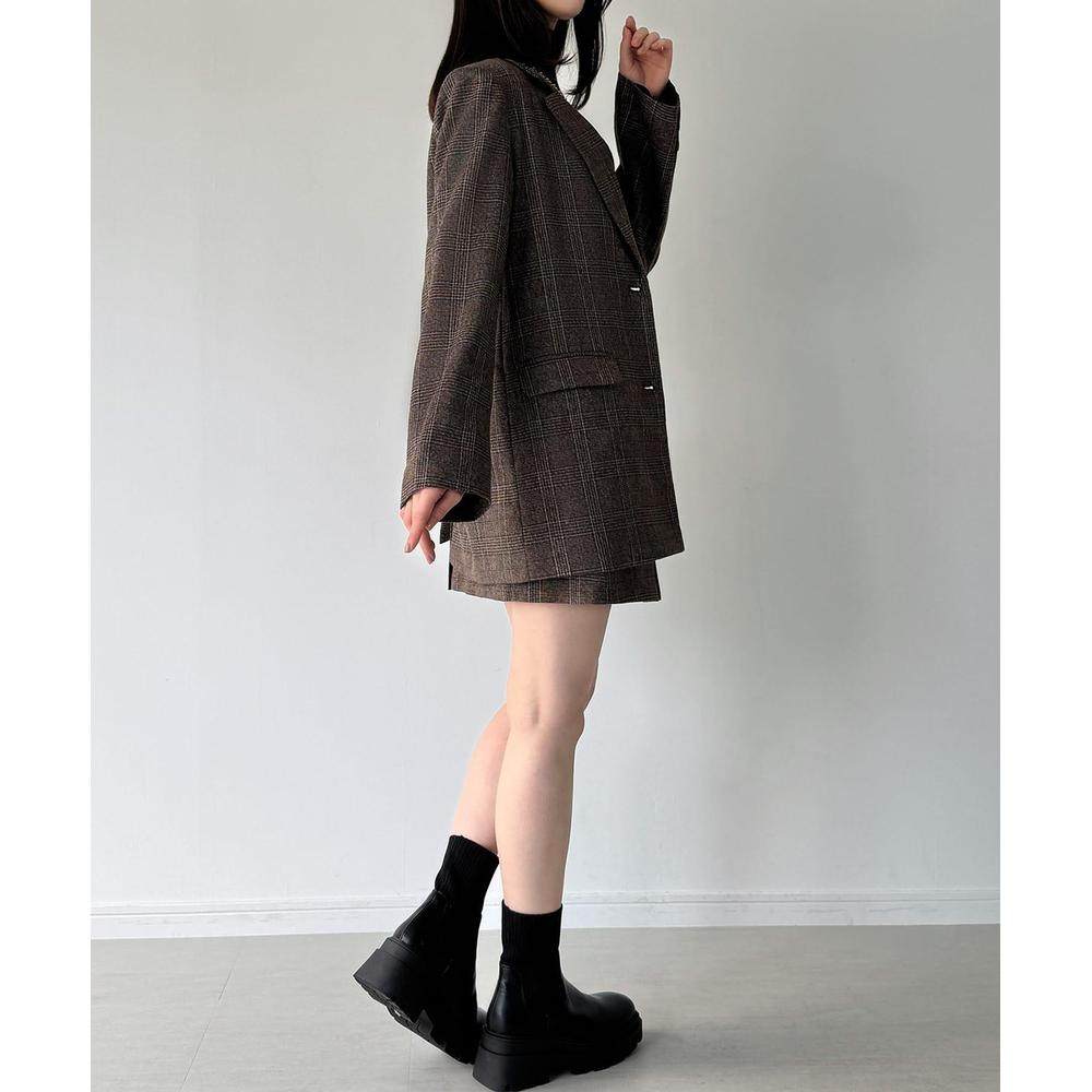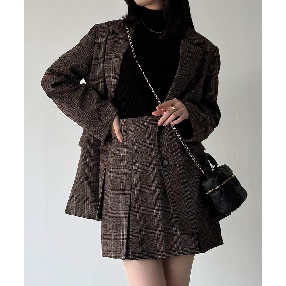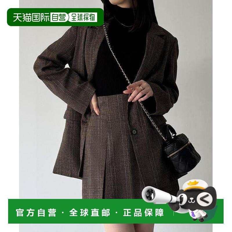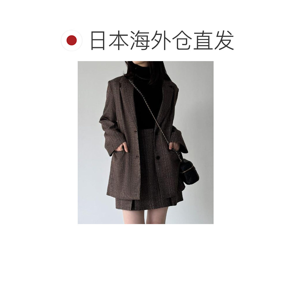 📚 1h可退 日本直邮JUNOAH 格纹宽松西装外套+喇叭迷你裙(带安全裤