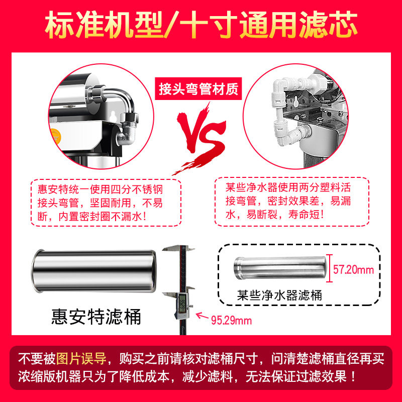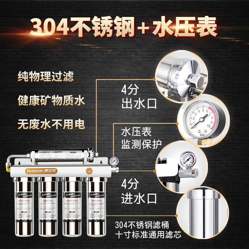 📚 惠安特304不锈钢超滤净水器家用10寸滤芯款厨房洗菜做饭过滤水碱