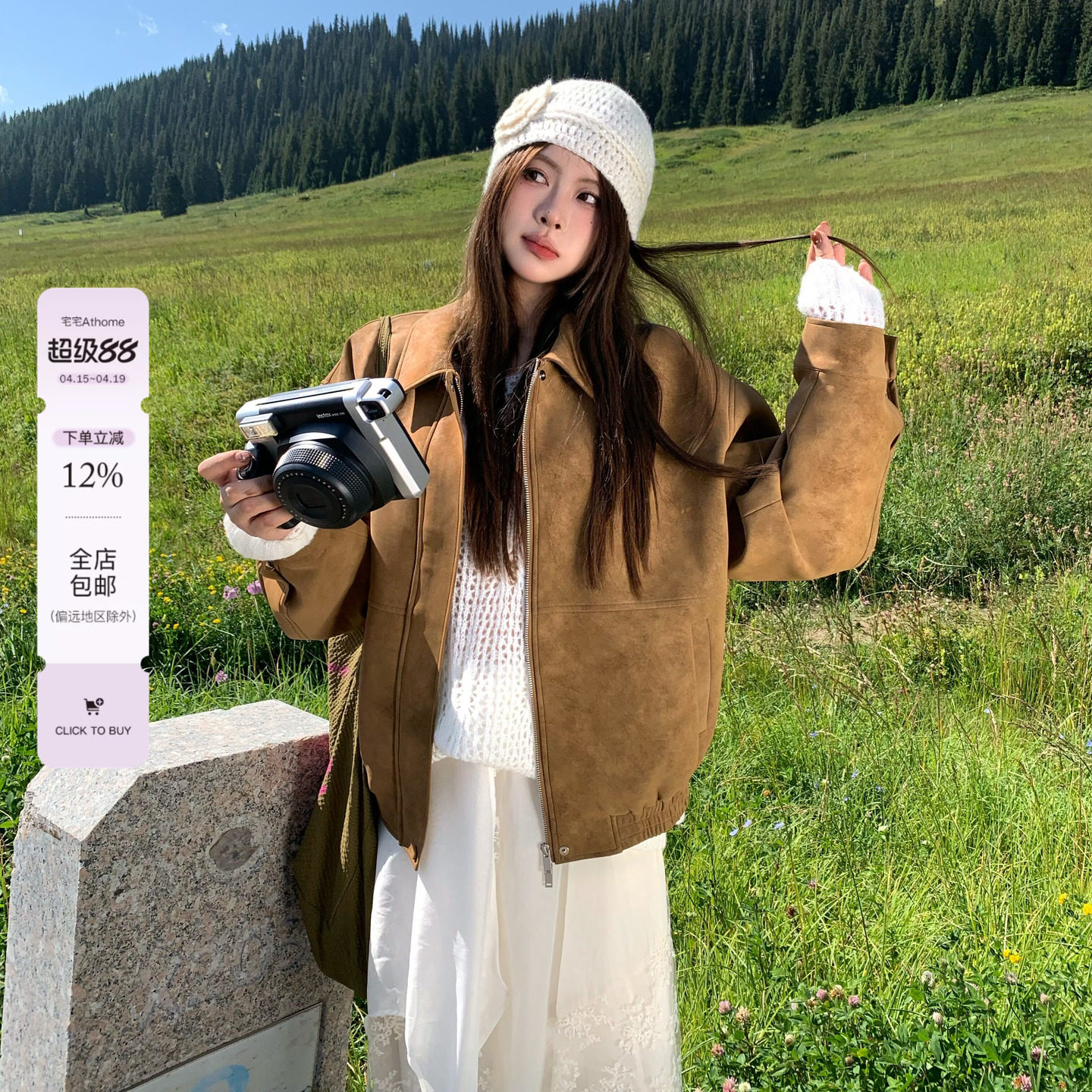 📚 宅宅athome//【藤姐同款】复古仿麂皮外套翻领宽松休闲上衣夹克