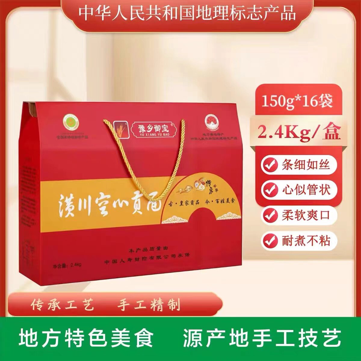 📚 豫乡御宝潢川空心贡面 纯手工挂面老人易消化16袋4.8斤红礼盒