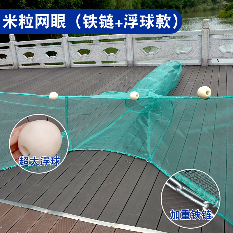 📚 大小进口围网拦网拖网清塘捕鱼虾绿色倒须八字网防逃渔网米粒网眼