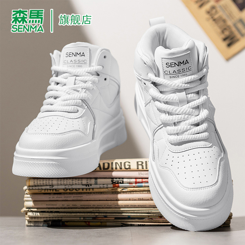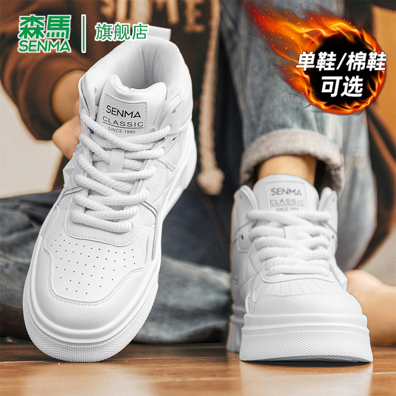 📚 森马休闲板鞋男款冬季加绒加厚高帮厚底真皮时尚百搭运动小白鞋男
