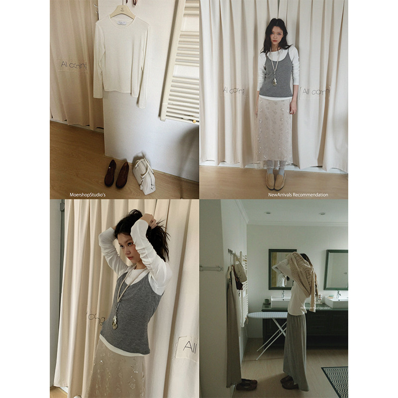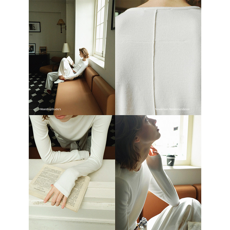 📚 MOERSHOP 人气断货王 简约百搭白色长袖T恤女秋冬叠穿内搭打底衫