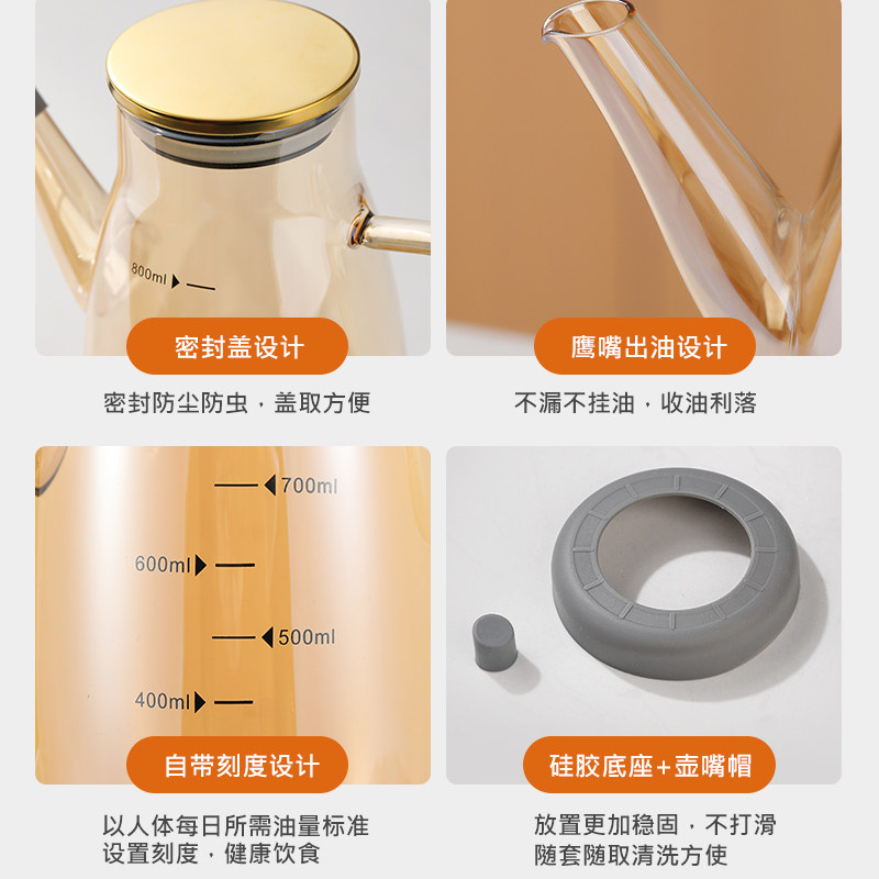 📚 LISSA避光玻璃油壶厨房家用食品级油瓶酱油醋调料瓶防漏水油壶罐