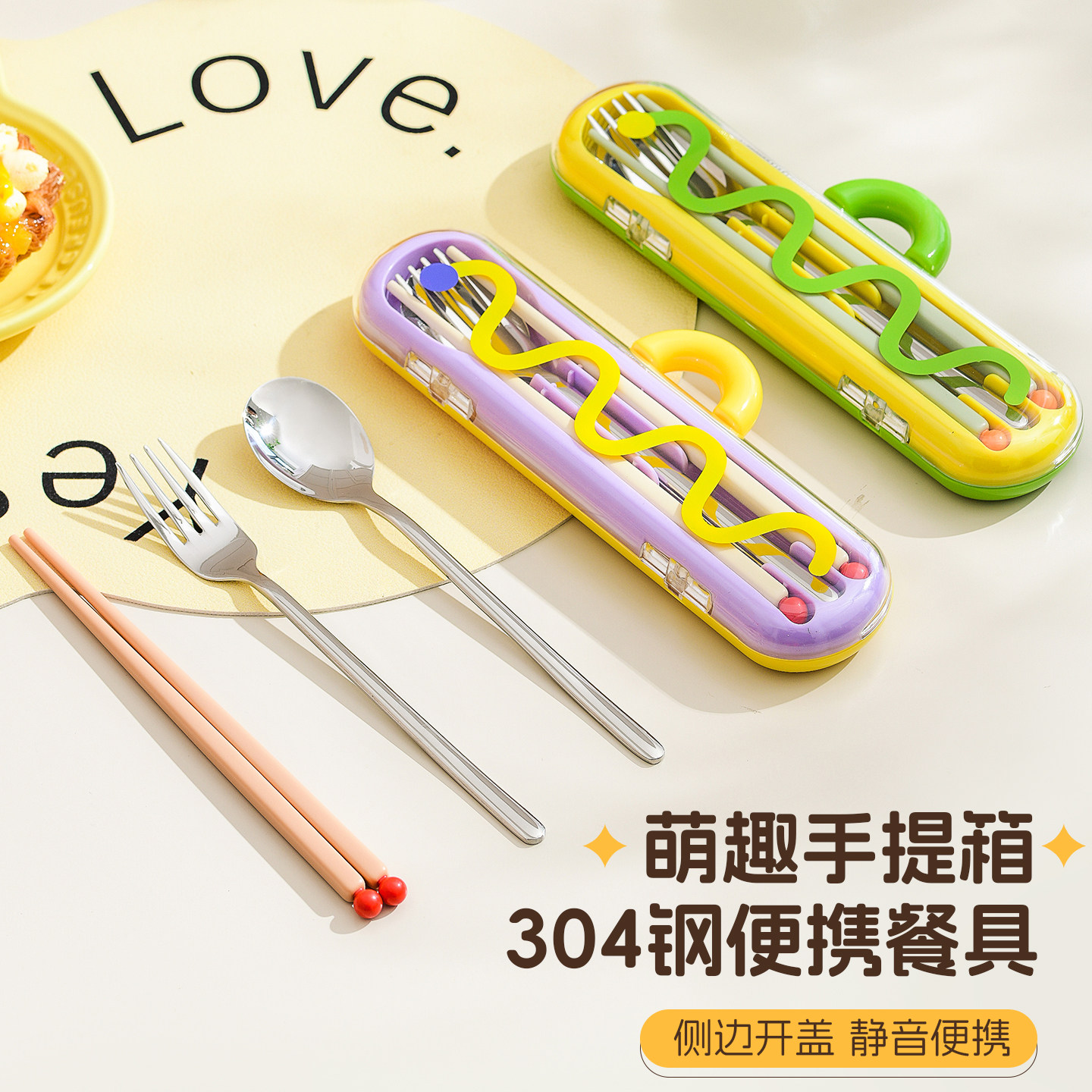 📚 304不锈钢筷子勺子叉子套装便携式餐具盒小学生上班旅行户外餐具