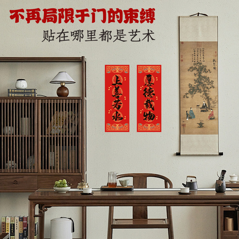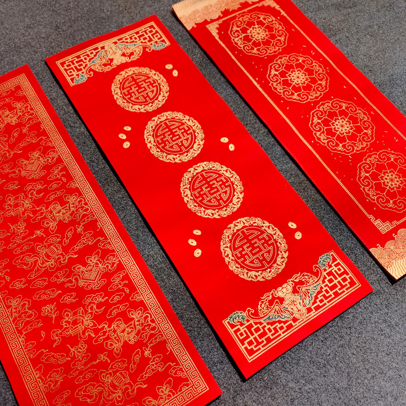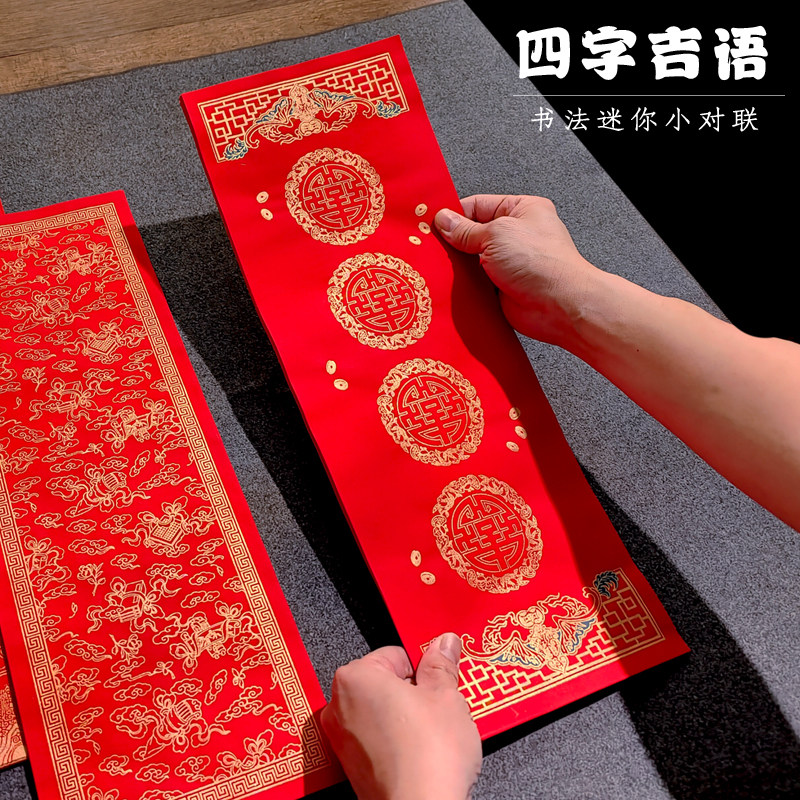 📚 四字四言迷你珲春小对联空白纸手写毛笔字书法创作春联纸蜡染万年红半生熟宣纸小尺寸冰箱贴宠物窝专用门对子