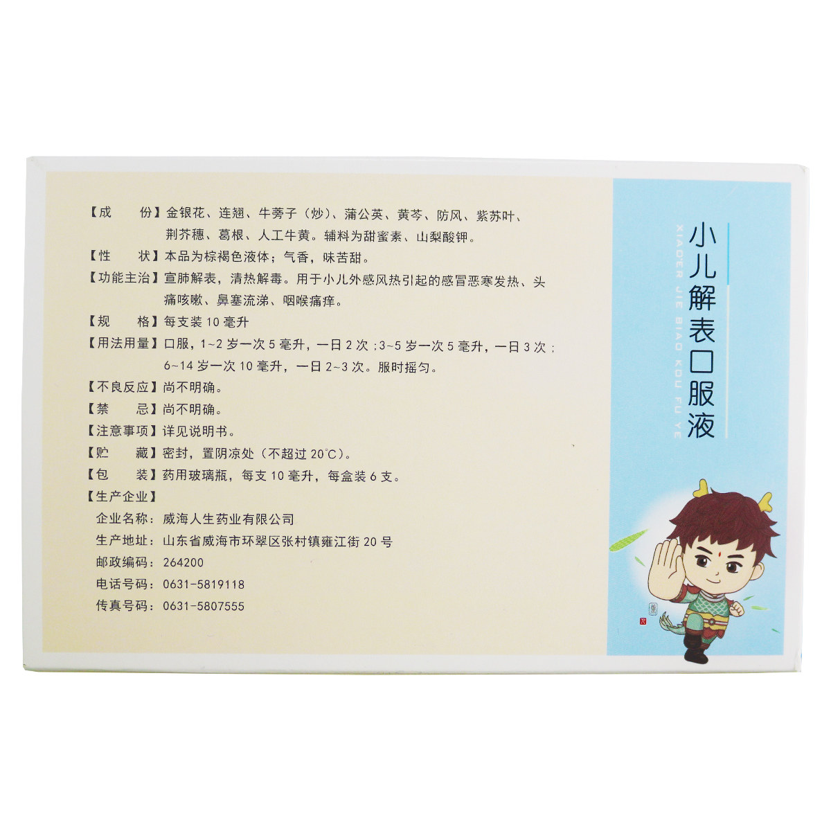 📚 人生小儿解表口服液6支儿童外感风热引起的发热咳嗽鼻塞流涕