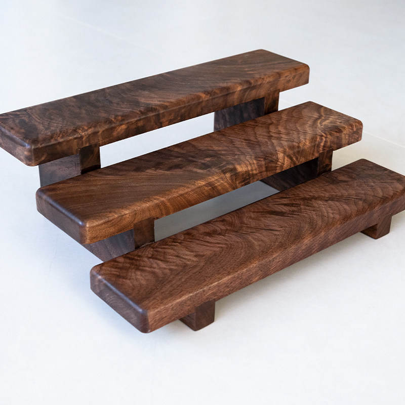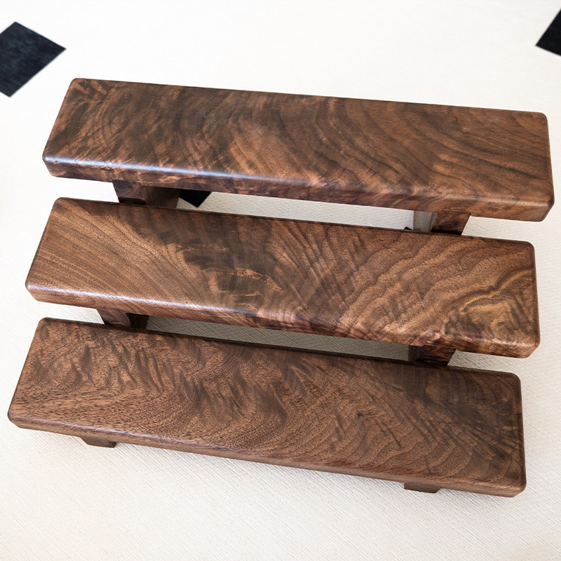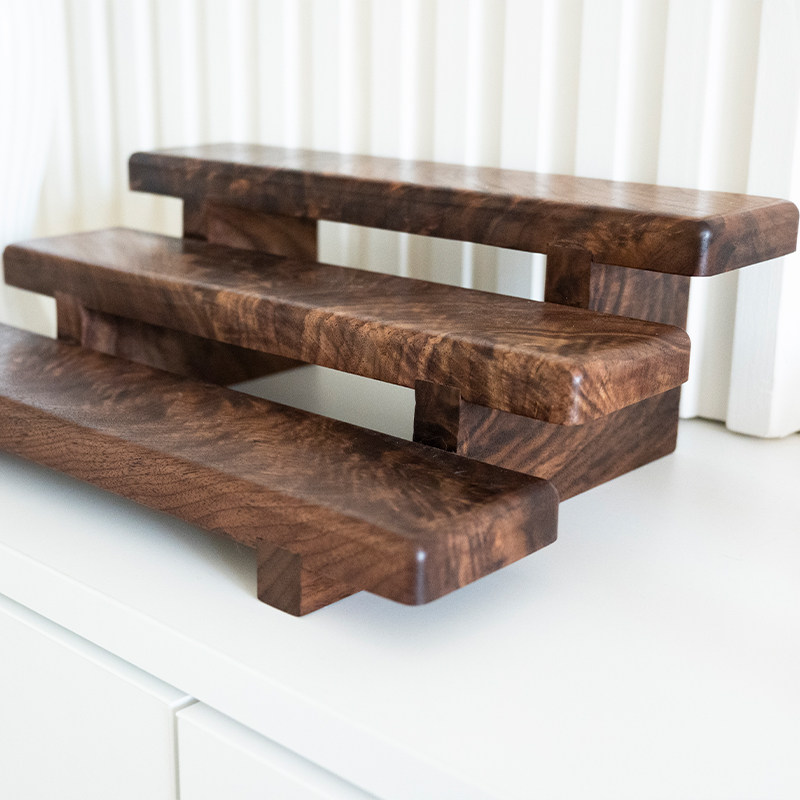 📚 北美黑胡桃金瘤纹三层阶梯置物架香水茶具文玩首饰珠宝展示架
