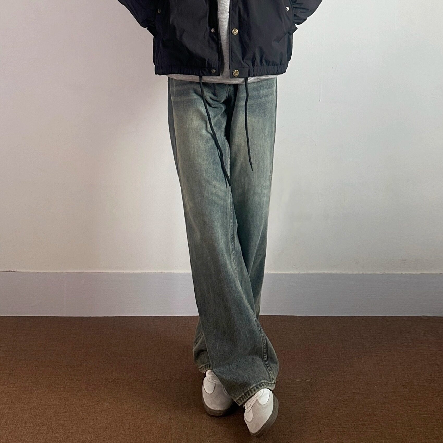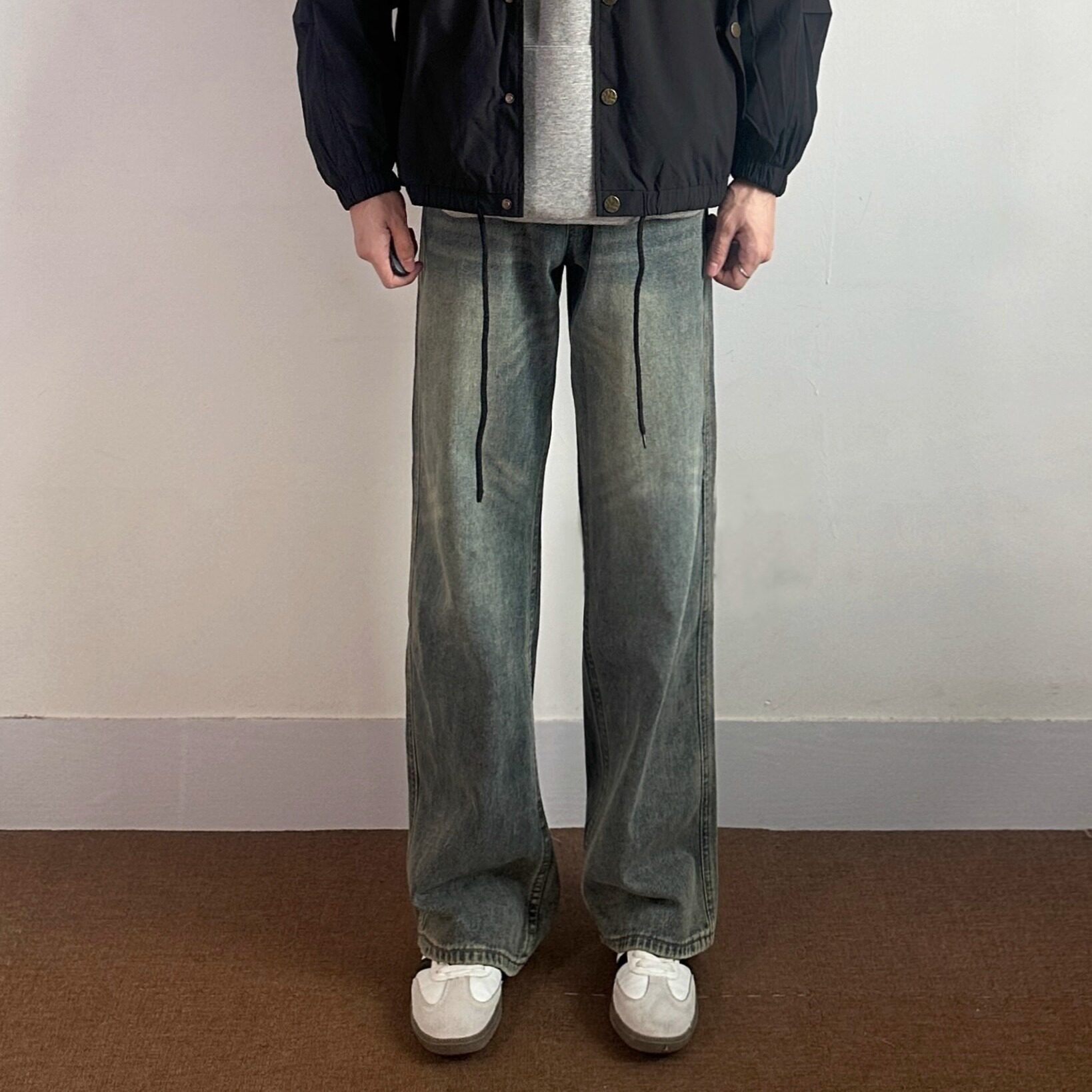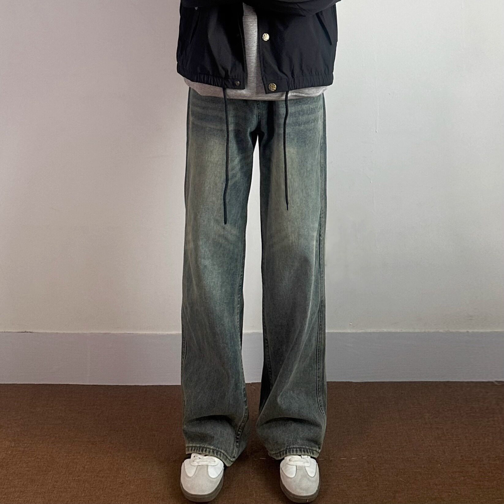 📚 WHICHONE 通勤美式复古水洗做旧猫须牛仔裤男宽松直筒休闲长裤