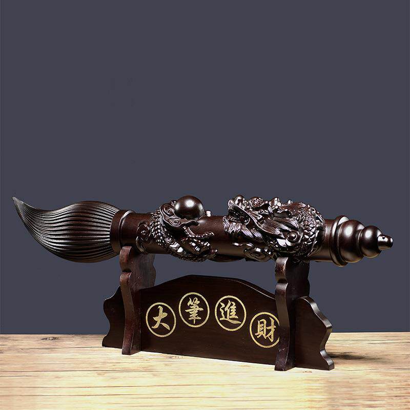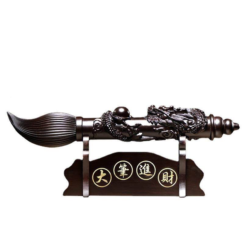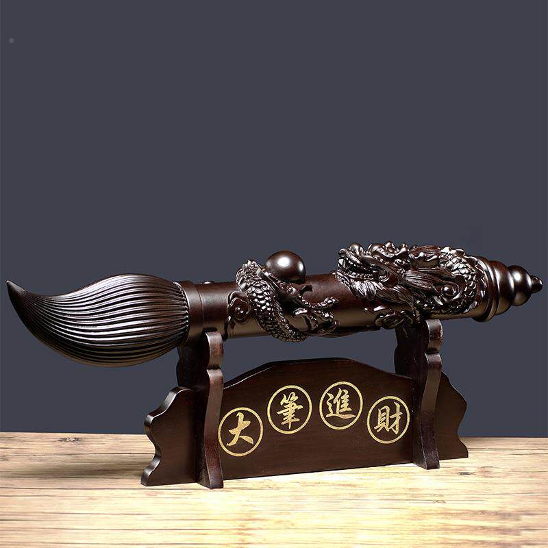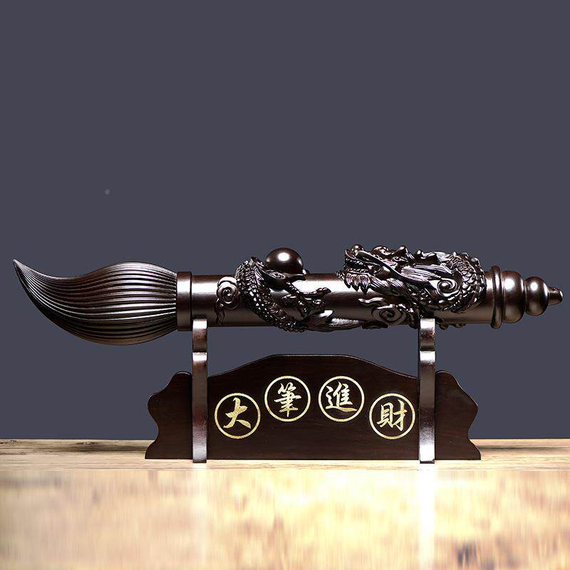 📚 檀黑木雕文笔摆件雕艺铭仙苑龙毛木质昌大笔进家居客厅装饰笔工艺