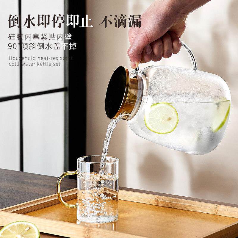 📚 耐高温冷水壶家用大容量玻璃凉白开 水杯客厅装水壶冷水壶茶壶套