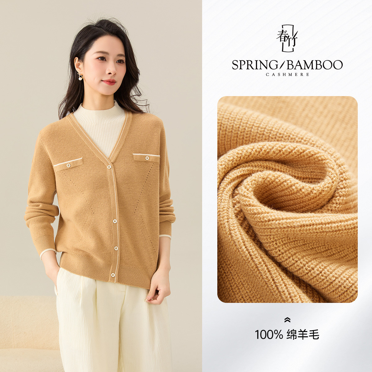 📚 春竹100%羊毛新款厚款半高领假两件套衫减龄洋气保暖内搭女羊毛衫
