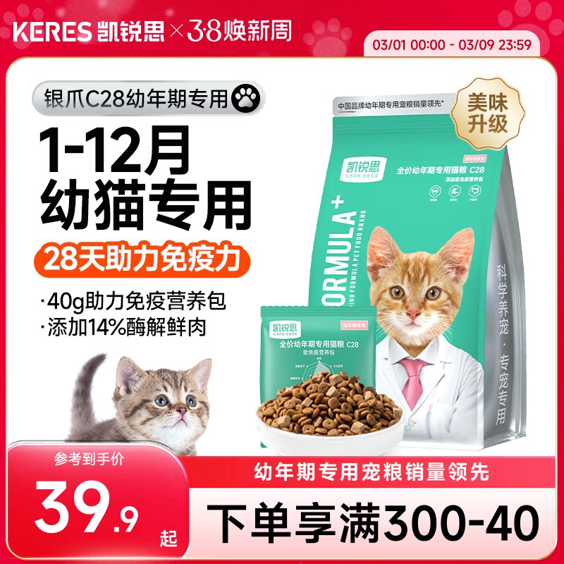 📚 凯锐思银爪C28幼猫专用猫粮1到12月奶糕鱼肉营养免疫高蛋白无谷