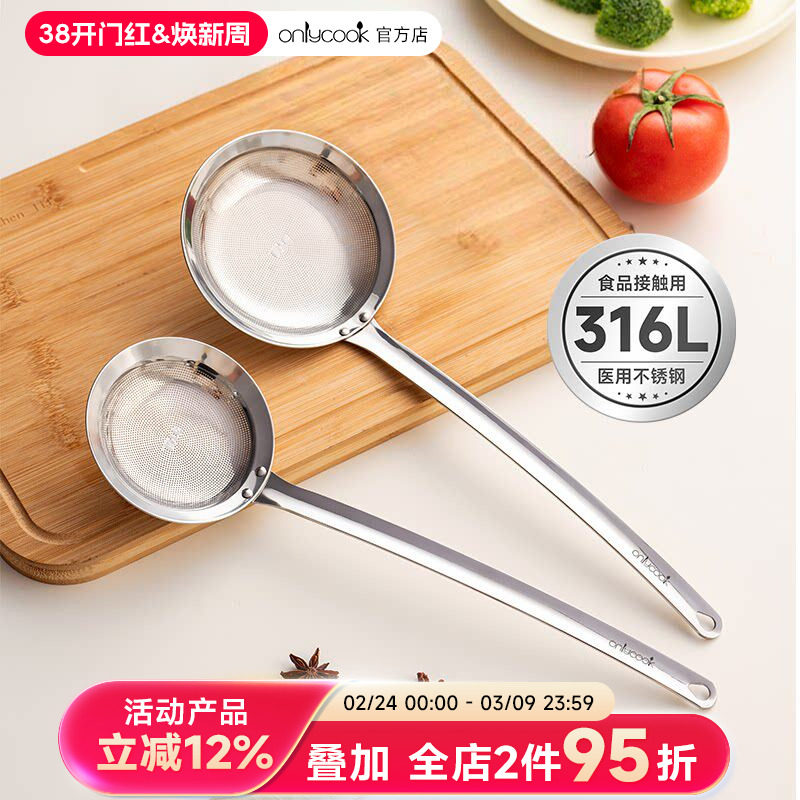 📚 onlycook撇浮沫勺316L不锈钢火锅滤油勺打沫去沫漏勺隔油汤勺捞勺