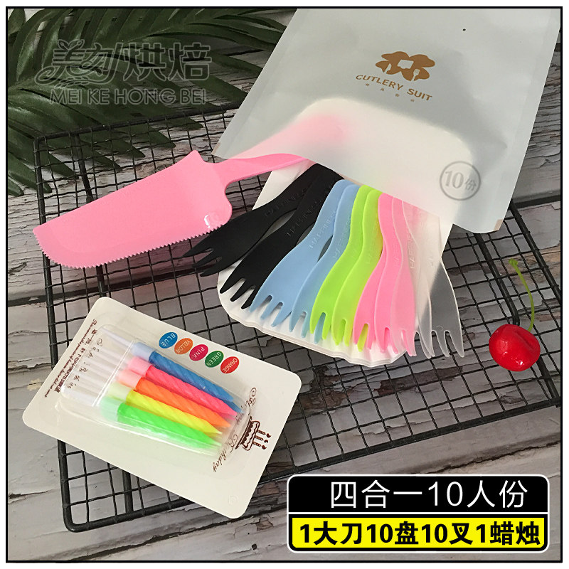 📚 蛋糕餐具套装一次性盘子刀叉盘生日盘叉刀叉碟餐盘纸盘四合一