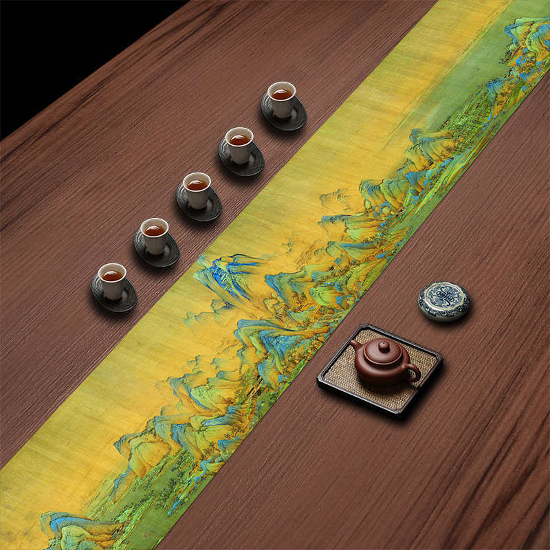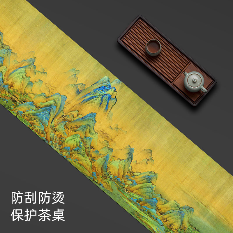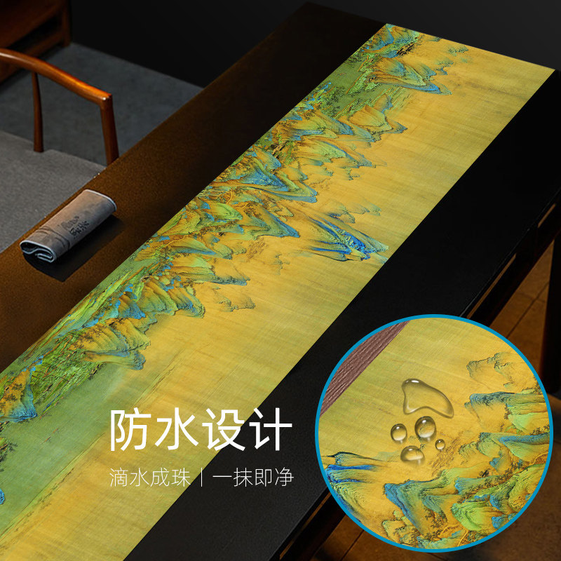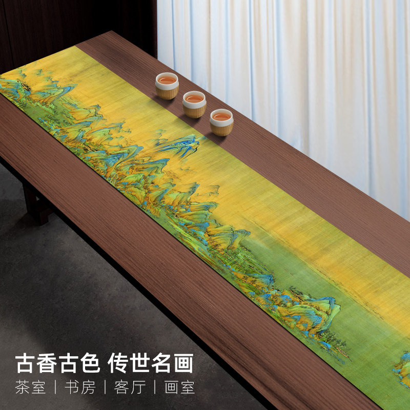 📚 千里江山图中式桌旗中国风茶席古画茶桌装饰桌布防水干泡台茶台布