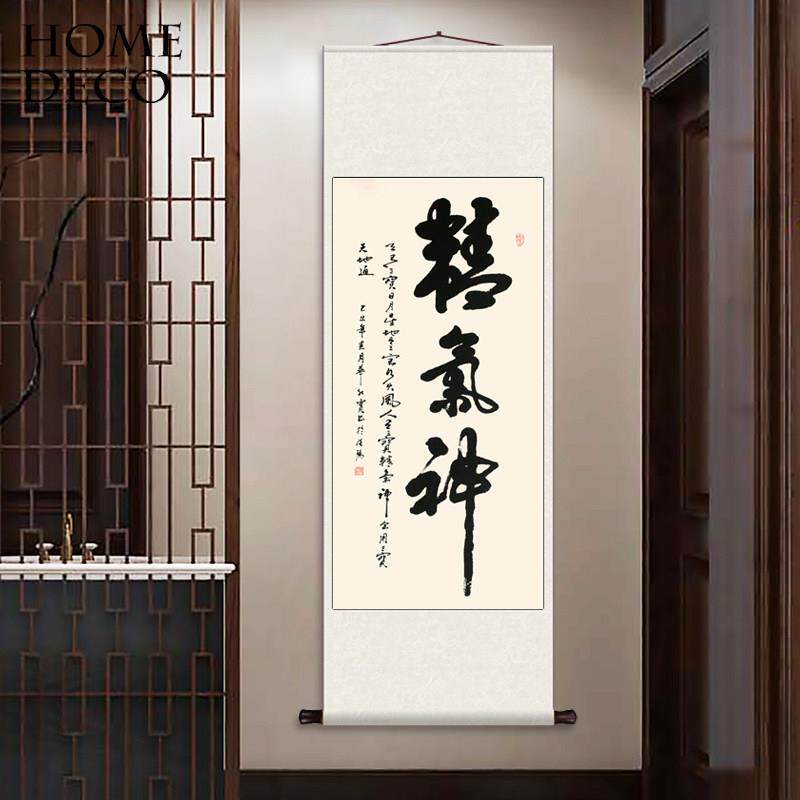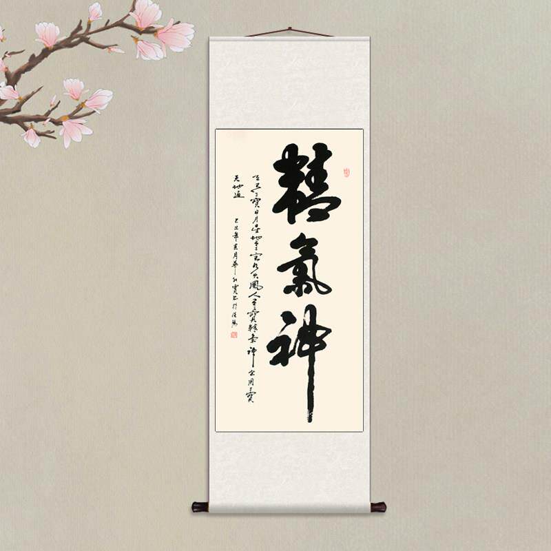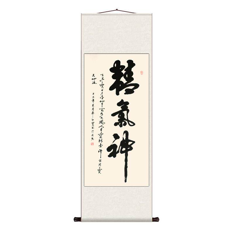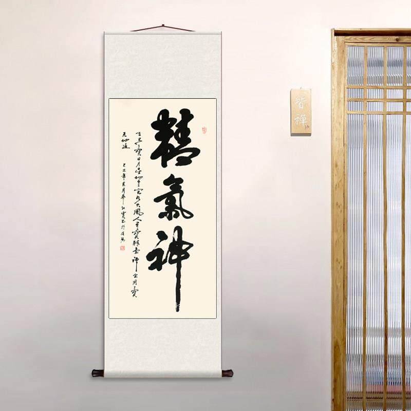📚 精气神 丝绸卷轴装饰挂画书房客厅玄关家用书法装饰画卷轴挂画