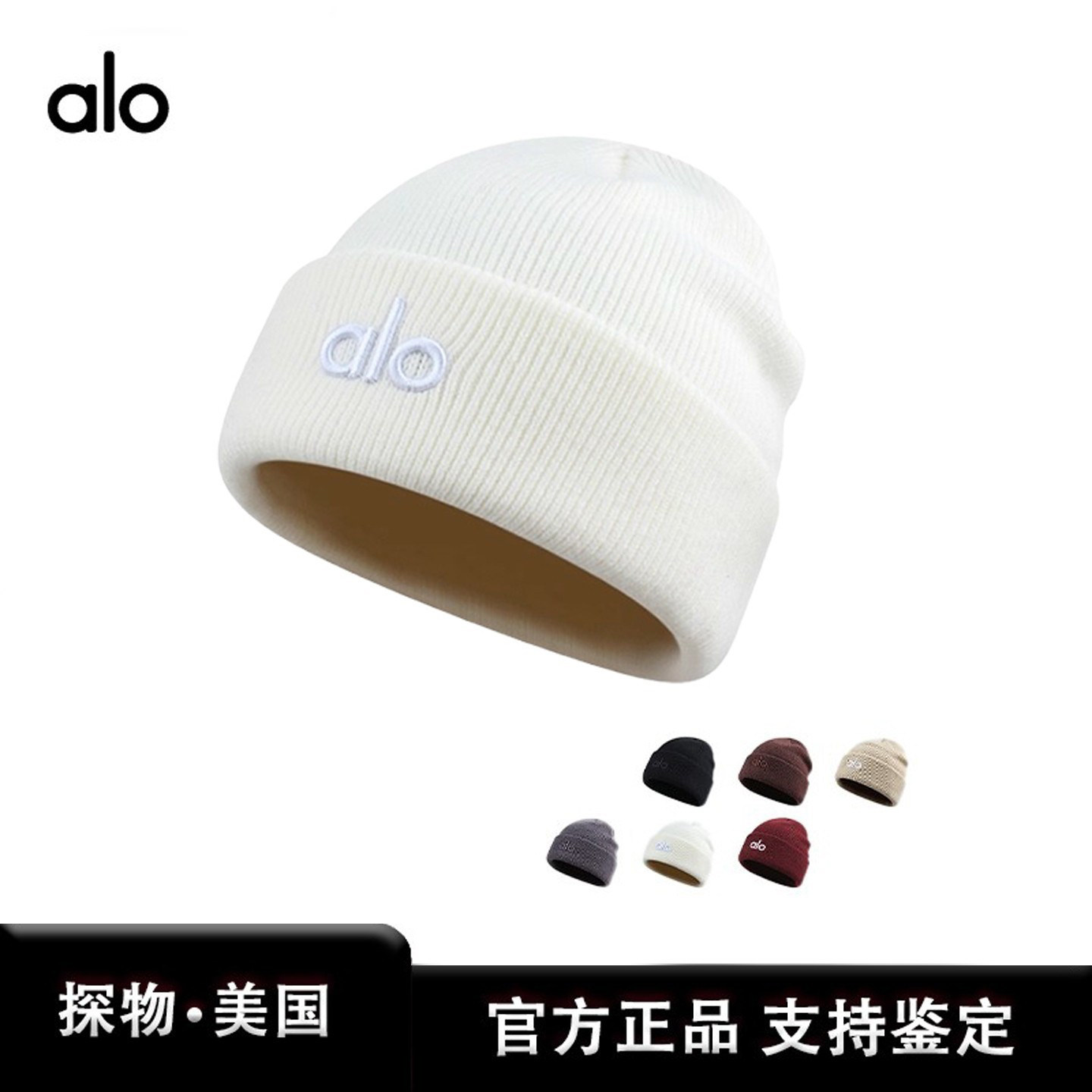 📚 ALO字母刺绣针织帽男女情侣款秋冬包头保暖毛线帽百搭冷帽套头帽