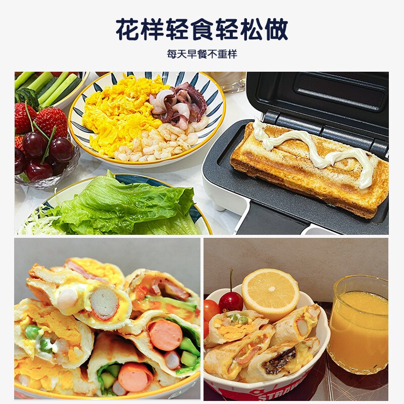 📚 HDBROS早餐机家用小型早餐热压三明治机烤面包华夫饼多功能吐