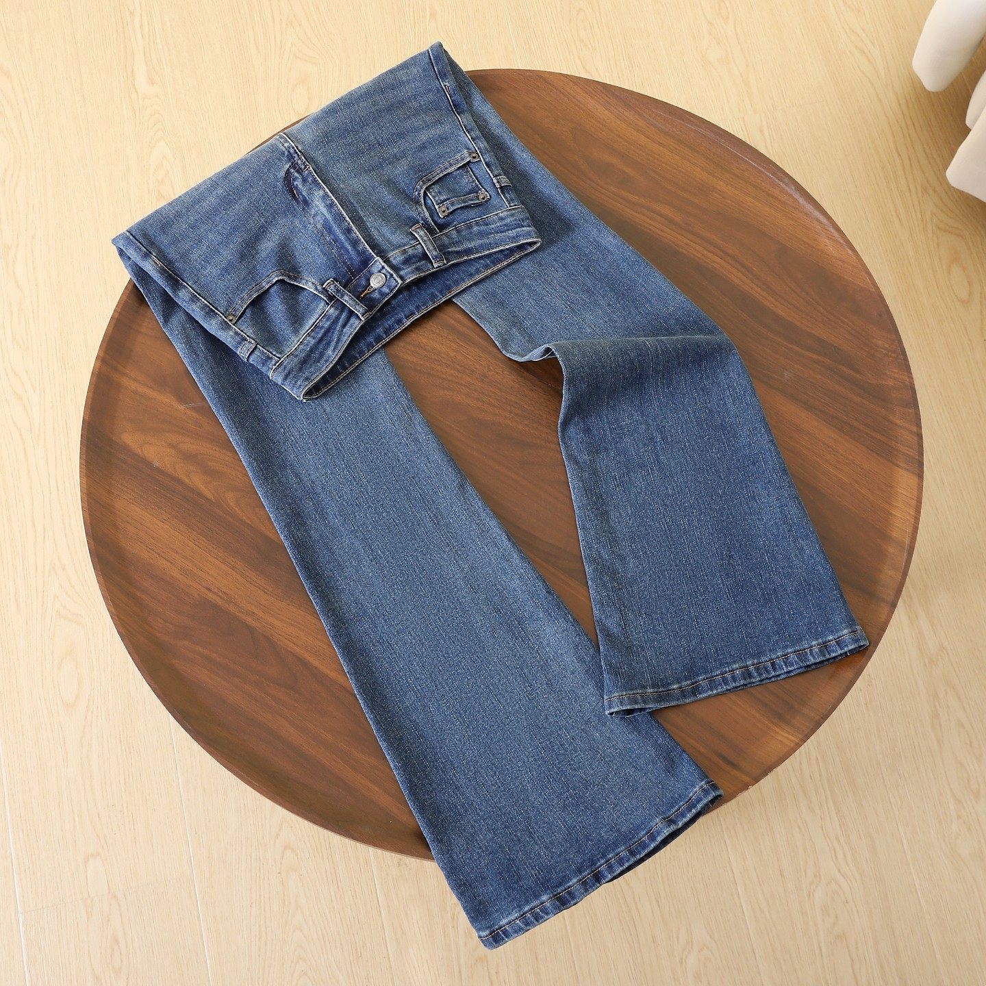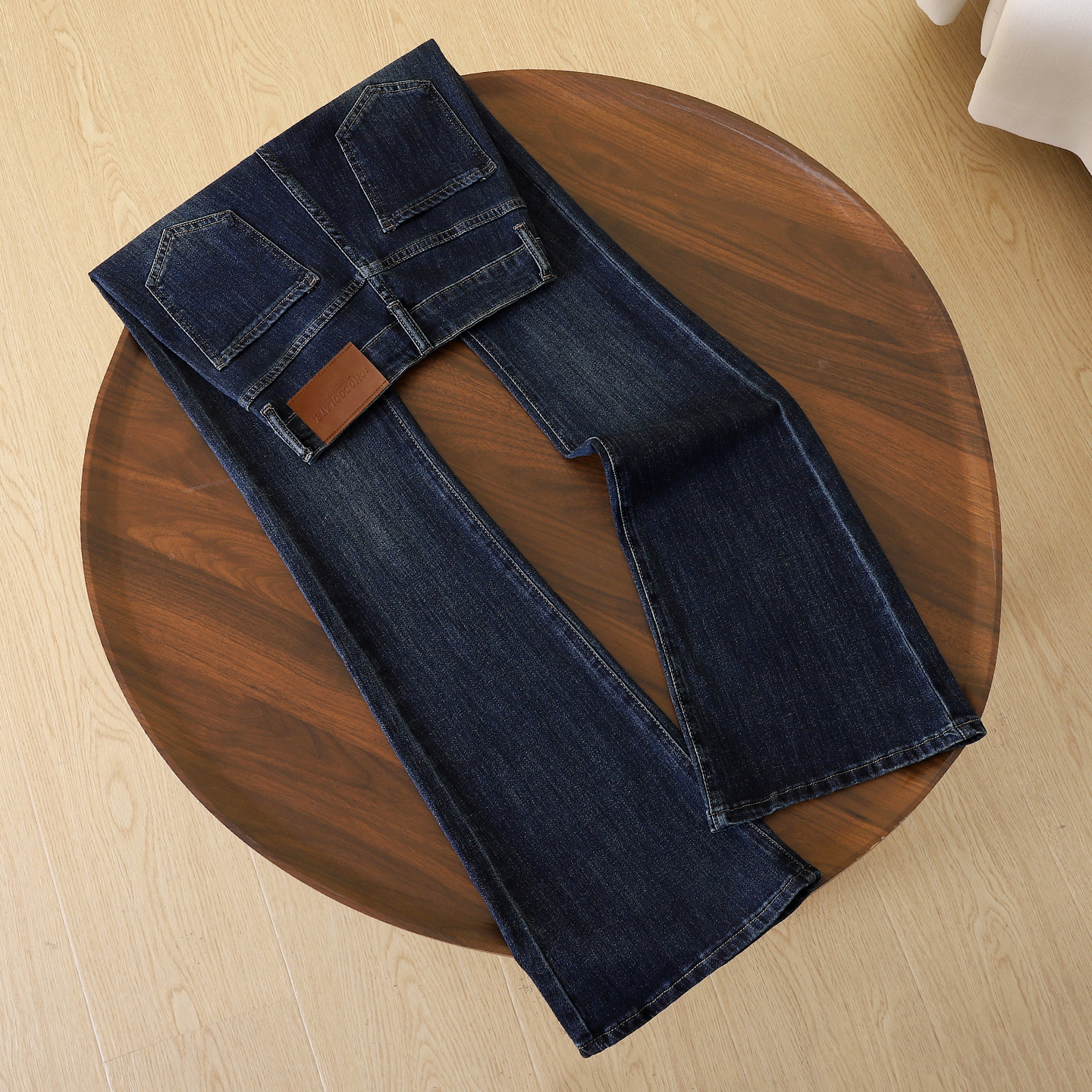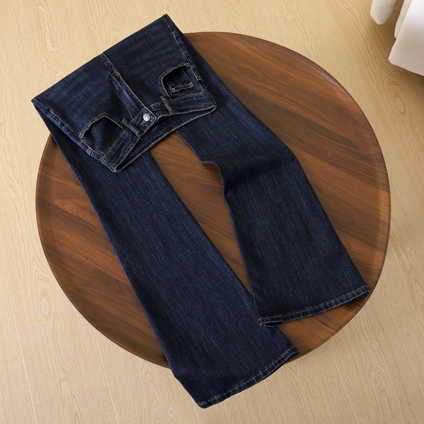 📚 it :CHOCOOLATE高腰喇叭裤女显瘦深蓝色修身九分微喇牛仔裤拖地裤