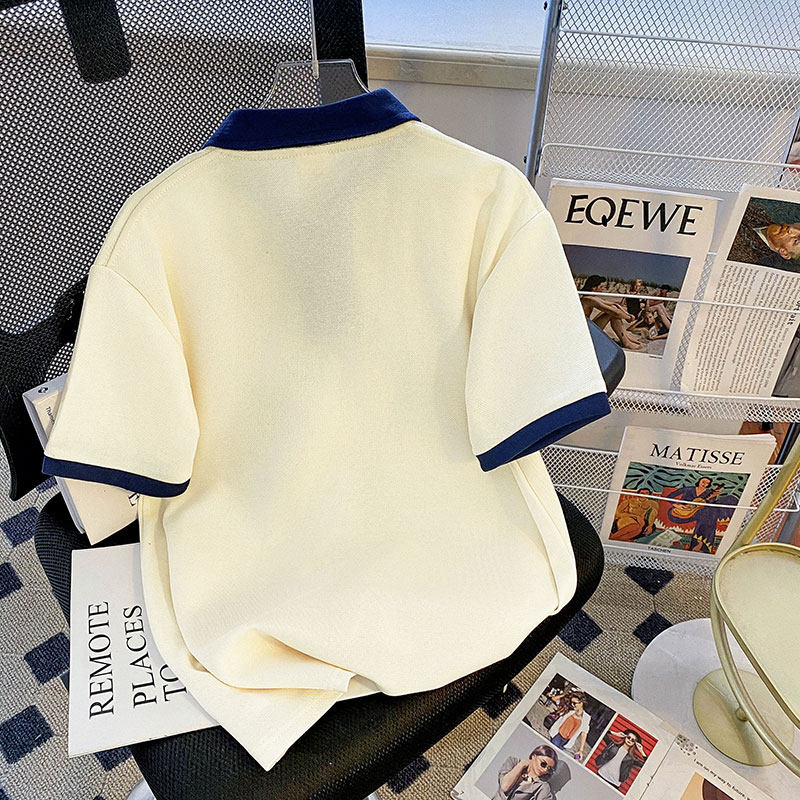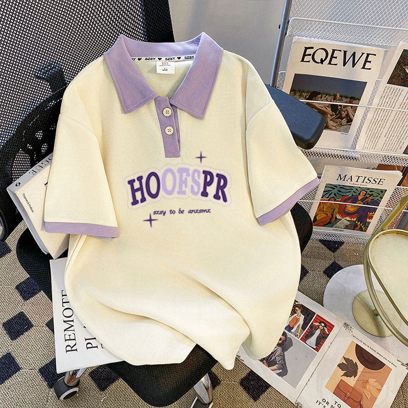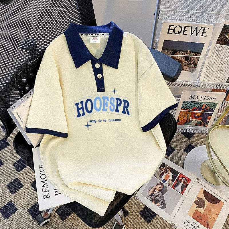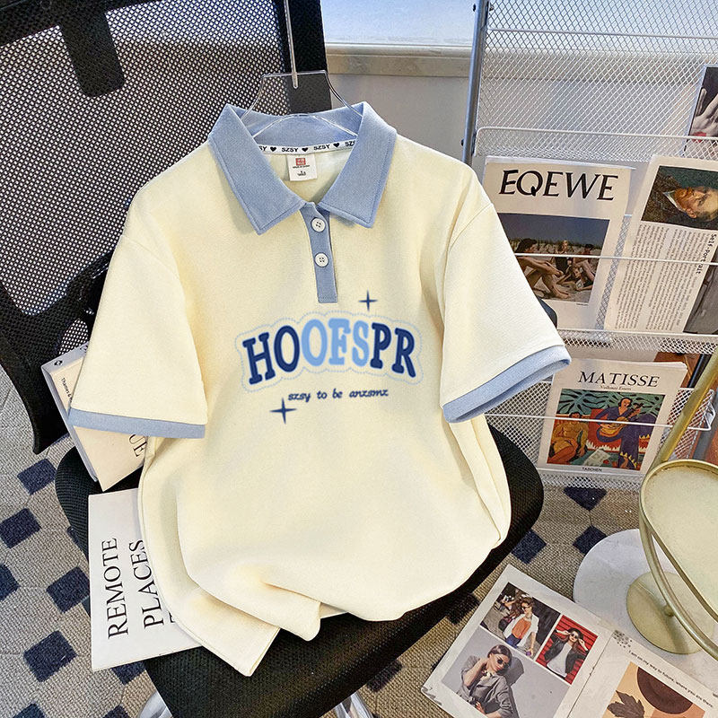 📚 初中女生运动学院风休闲上衣夏新款高中学生宽松短袖Polo翻领T恤