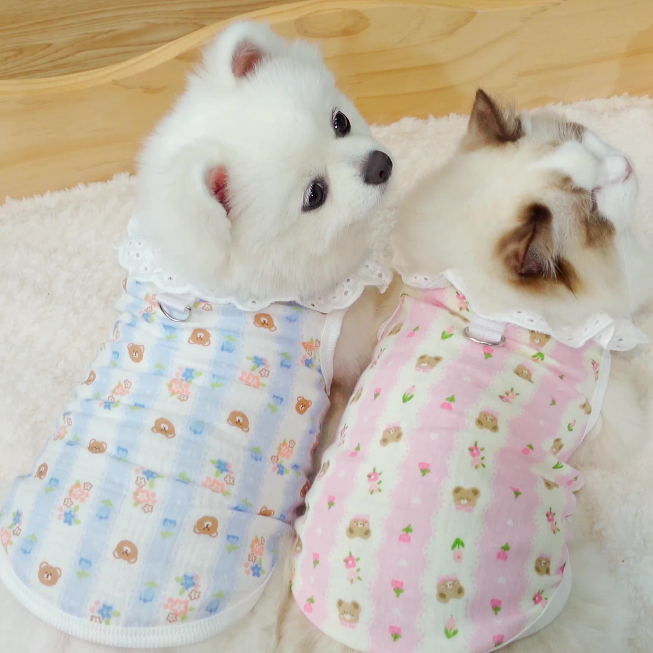 📚 猫咪衣服秋冬新款蕾丝花边马甲透气薄款狗猫咪衣服空调服舒适保暖