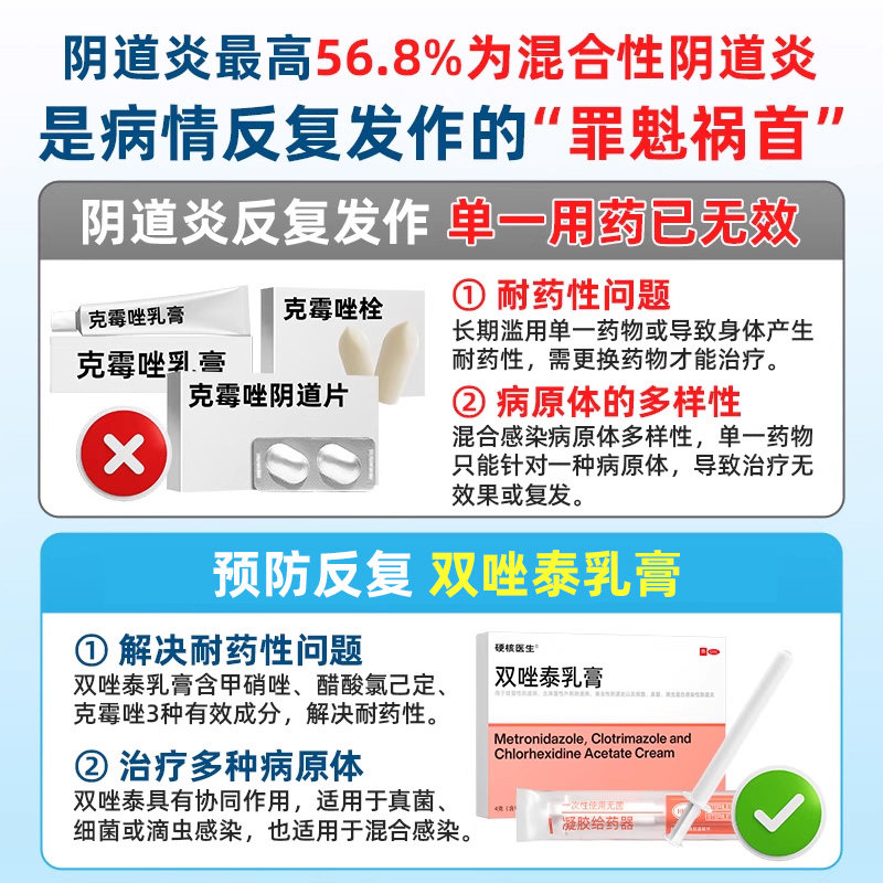 📚 克霉唑专治霉菌性阴道炎官方旗舰店妇科用药栓片白带多反复豆腐渣