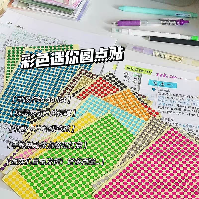 📚 彩色迷你标题索引贴纸学生多功能笔记分类标签圆点贴手账装饰贴画