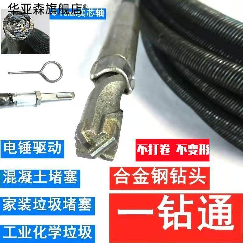 📚 软钢丝钻头电工线 线管疏通器水泥混泥土硬l物堵塞电动疏通电锤钻