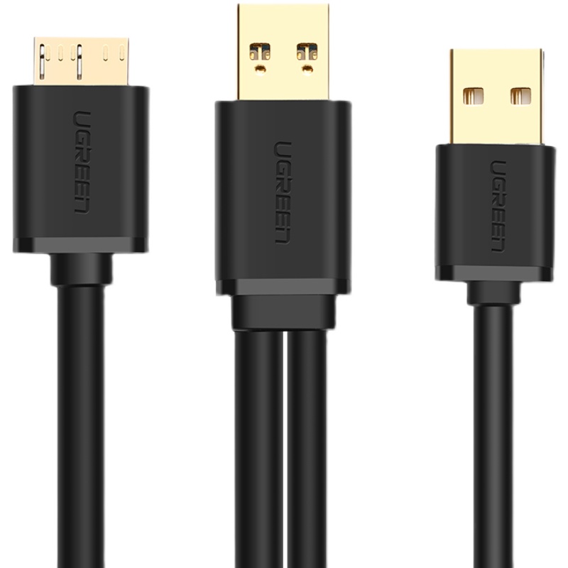 📚 绿联 Micro USB3.0数据线 移动硬盘盒高速传输连接线 双供电接口