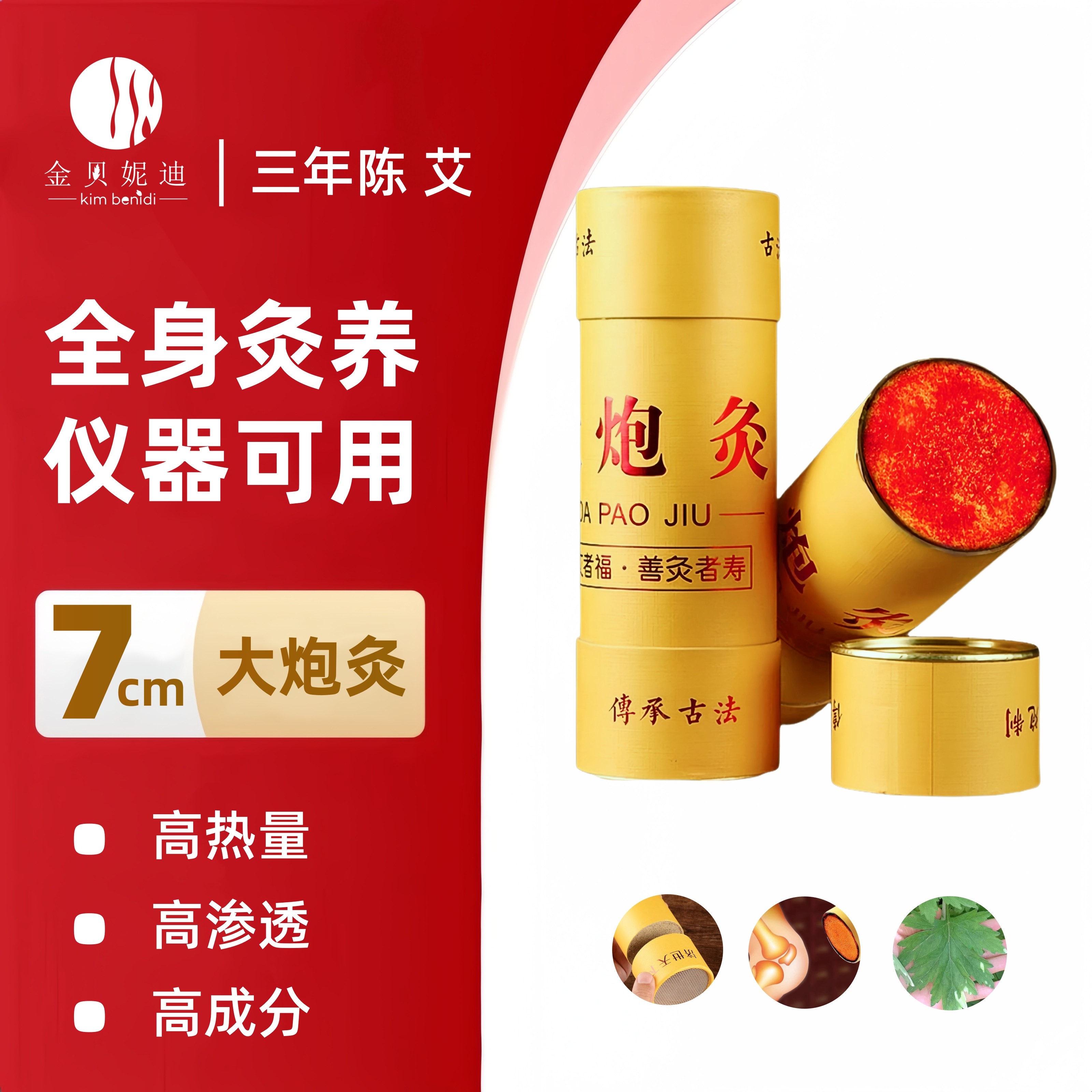 📚 金贝妮迪明火艾灸艾条大号加粗大炮艾绒柱陈年家用纯艾棒雷火柱