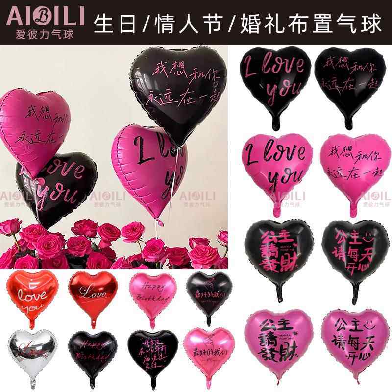 📚 情人节18寸爱心气球生日场景布置用品浪漫印字氦气飘空放飞气球
