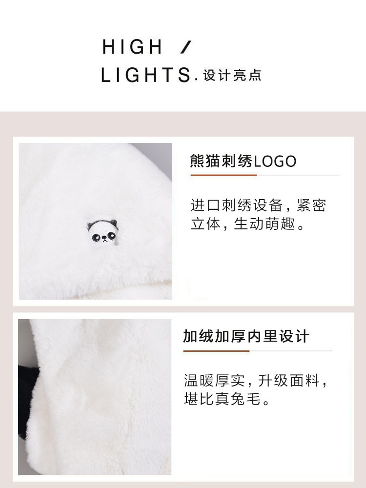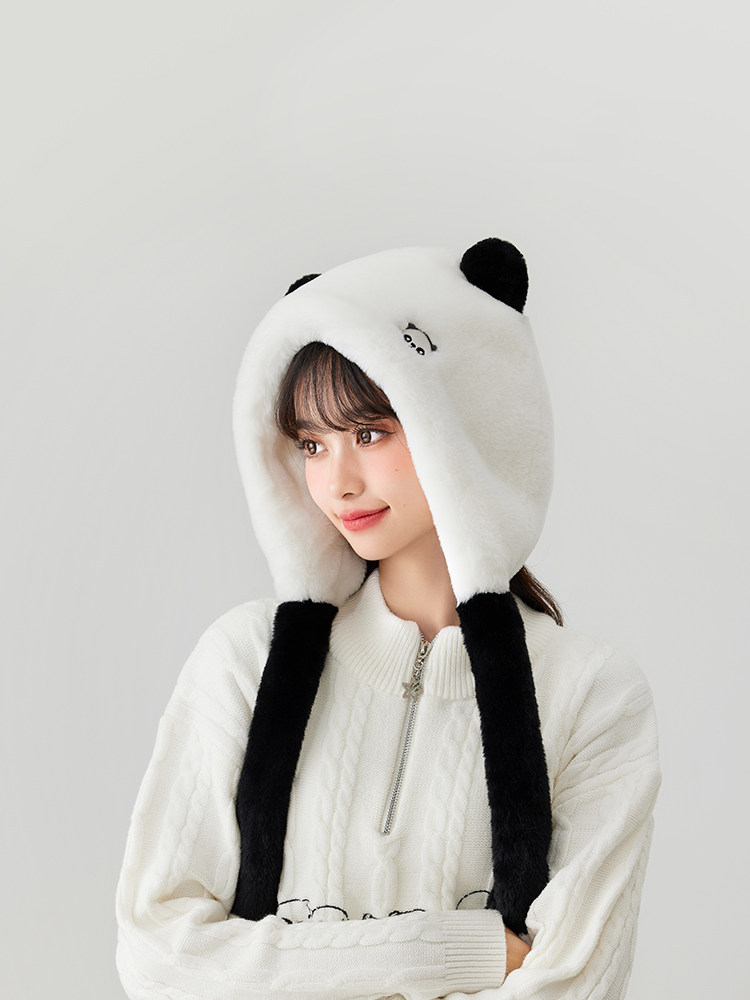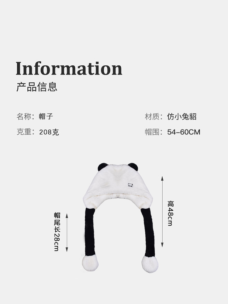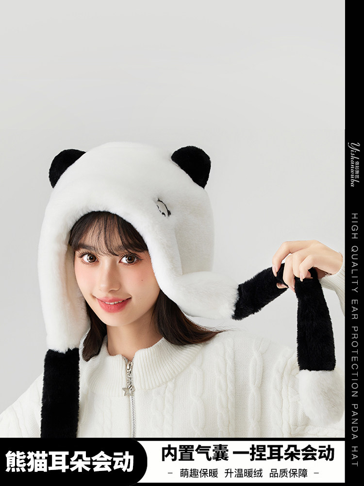 📚 熊猫帽子捏一捏会动的耳朵可爱毛绒保暖雷锋帽女冬季防风护耳帽男