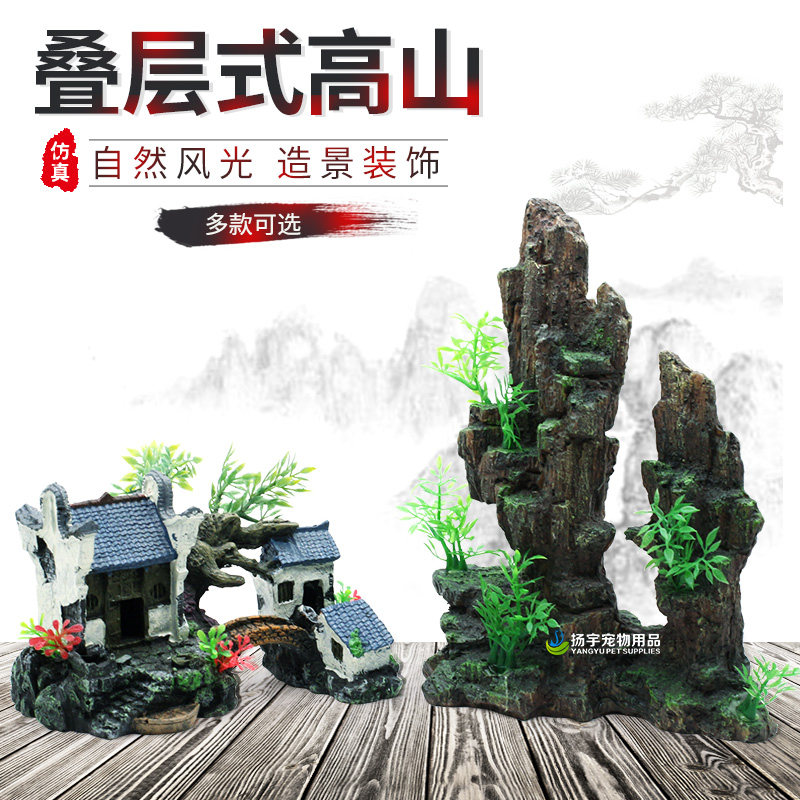 📚 鱼缸造景装饰假山树脂石头仿真假山造景套餐水族箱布景仿石山摆件