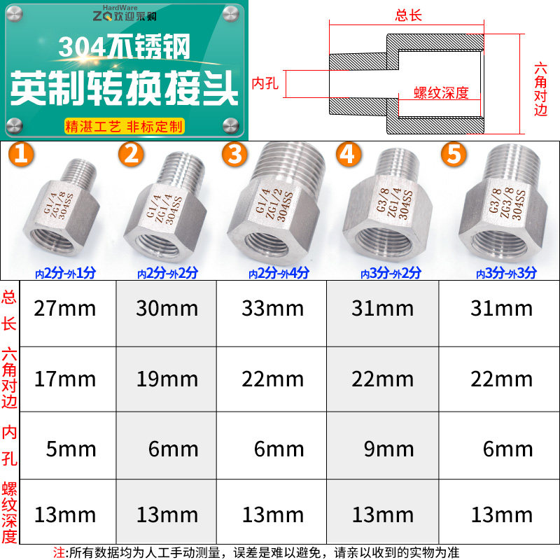 📚 304高压不锈钢内外丝转接头内外牙加厚直接1分2分3分4分直角弯头