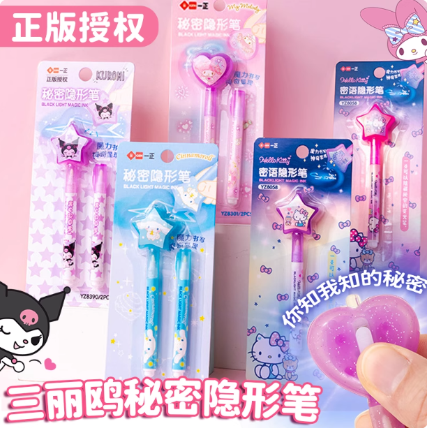📚 一正三丽鸥隐形荧光笔学生秘密隐藏字迹魔术笔笔夜光紫外线照射笔