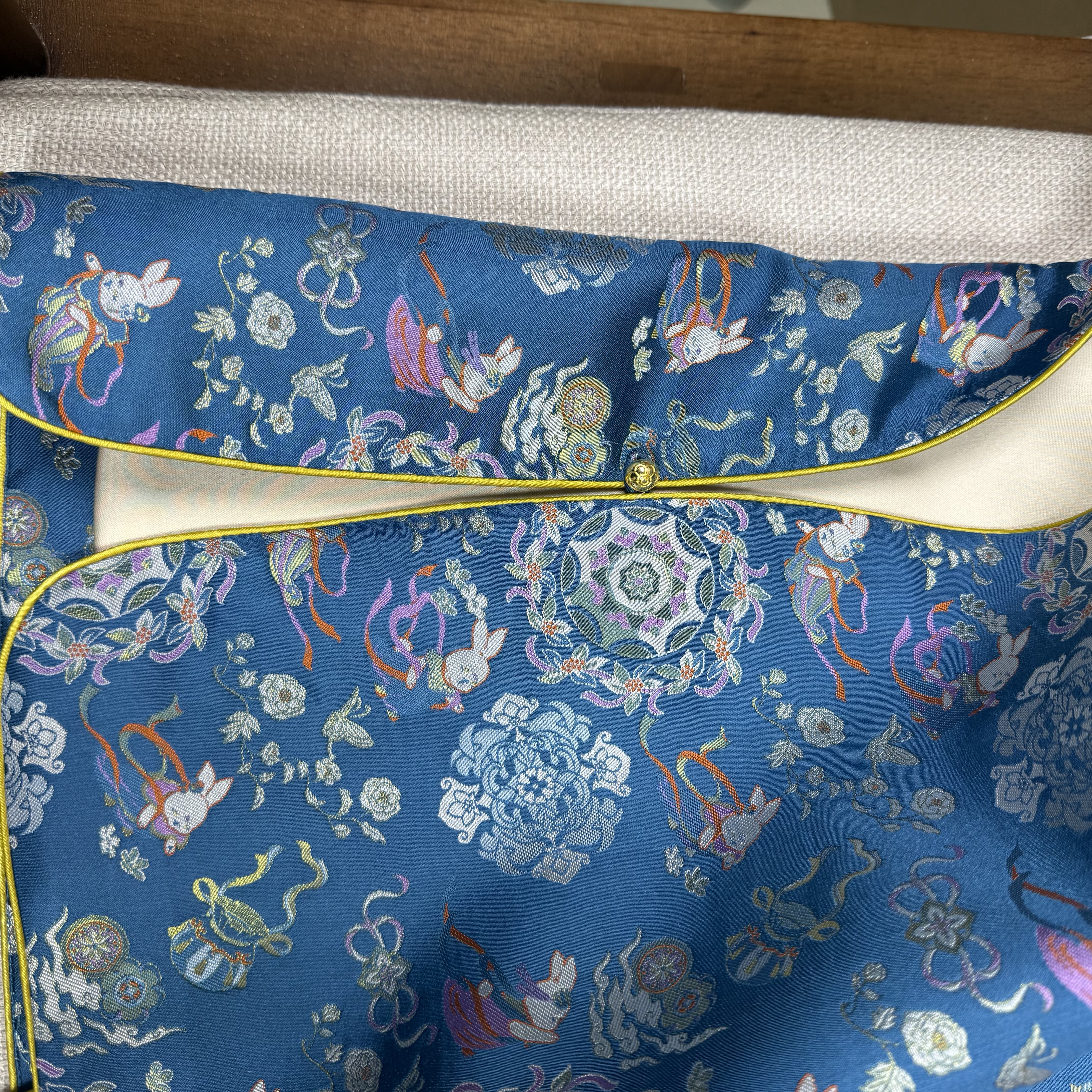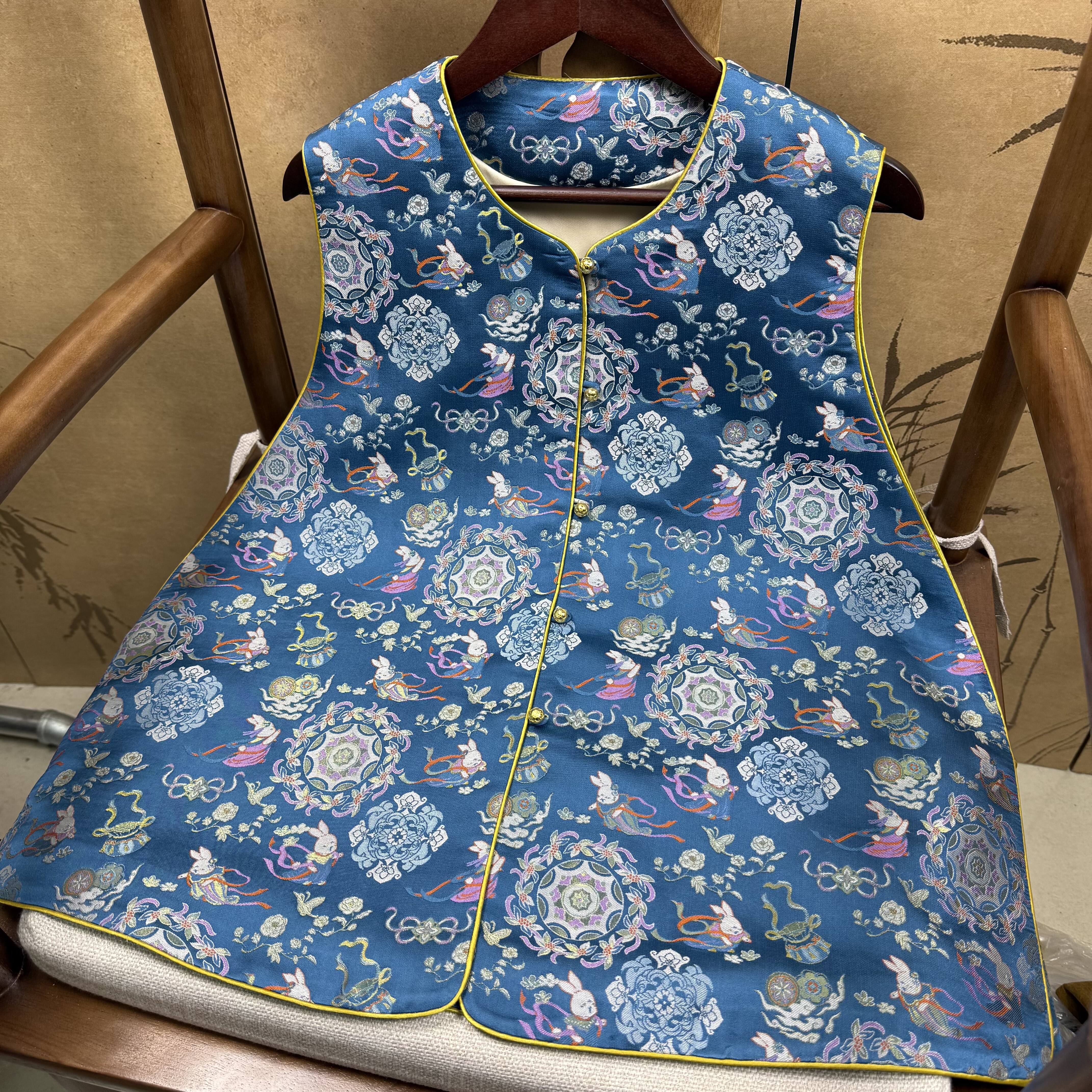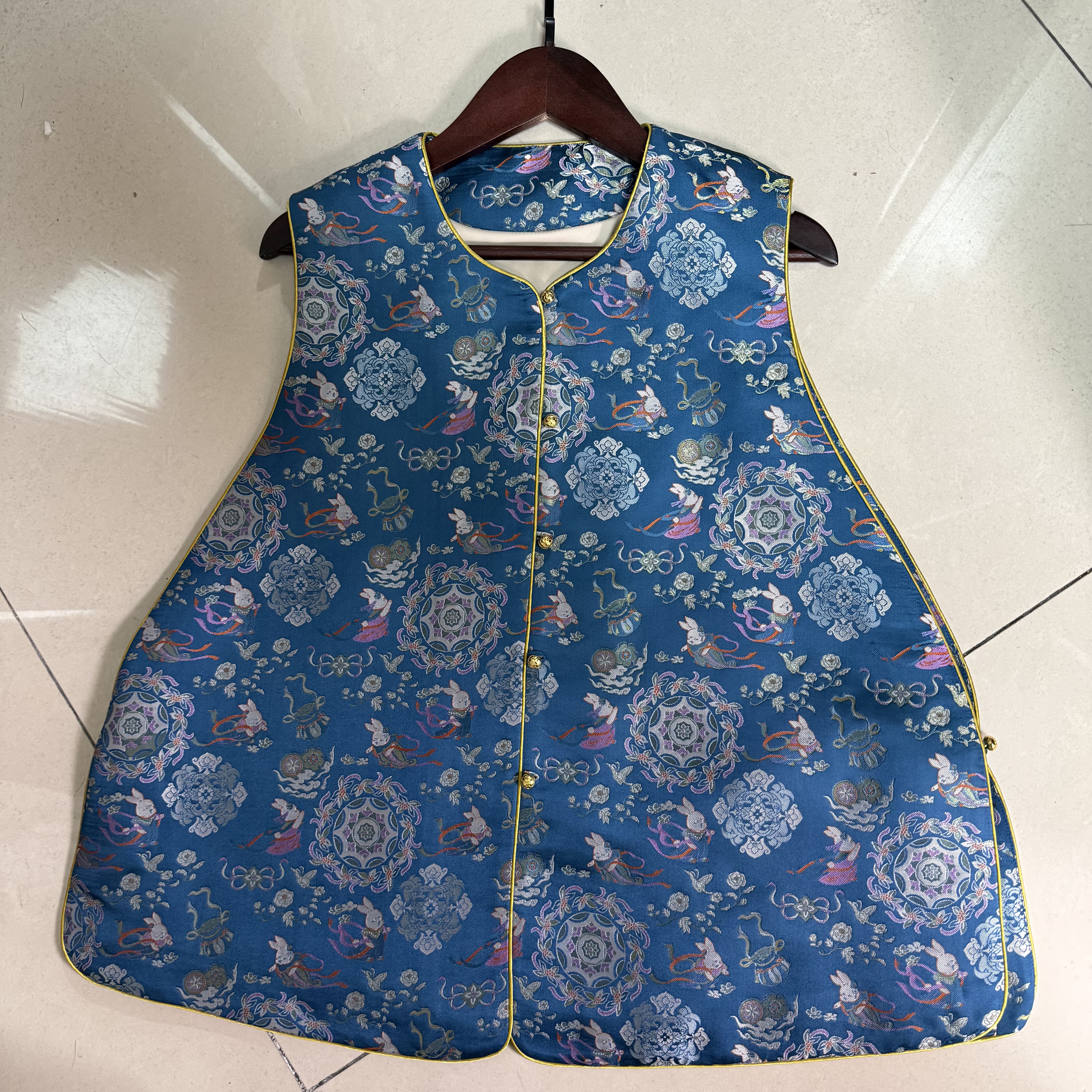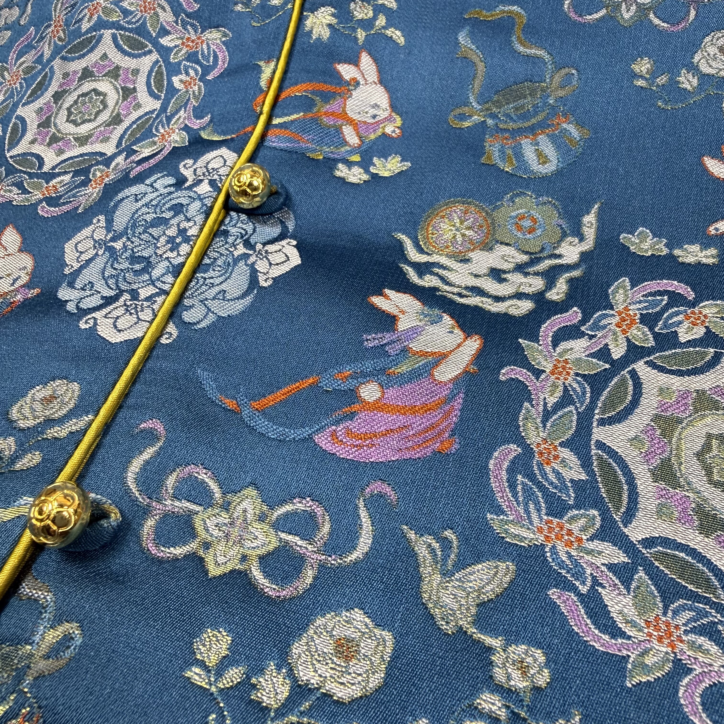 📚 三马宋锦100%桑蚕丝50姆米深蓝色敦煌飞天兔A版老宋锦马甲新中式