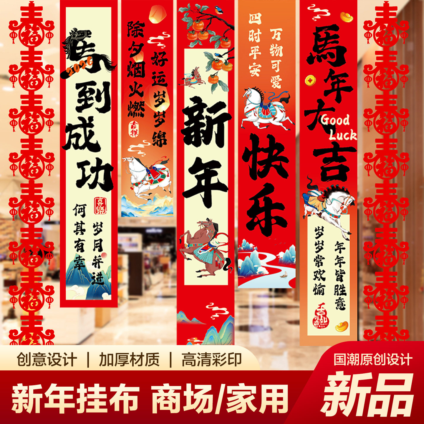 📚 2026新款长条福字拉花彩带条新年春节过年室内客厅挂件乔迁装饰品